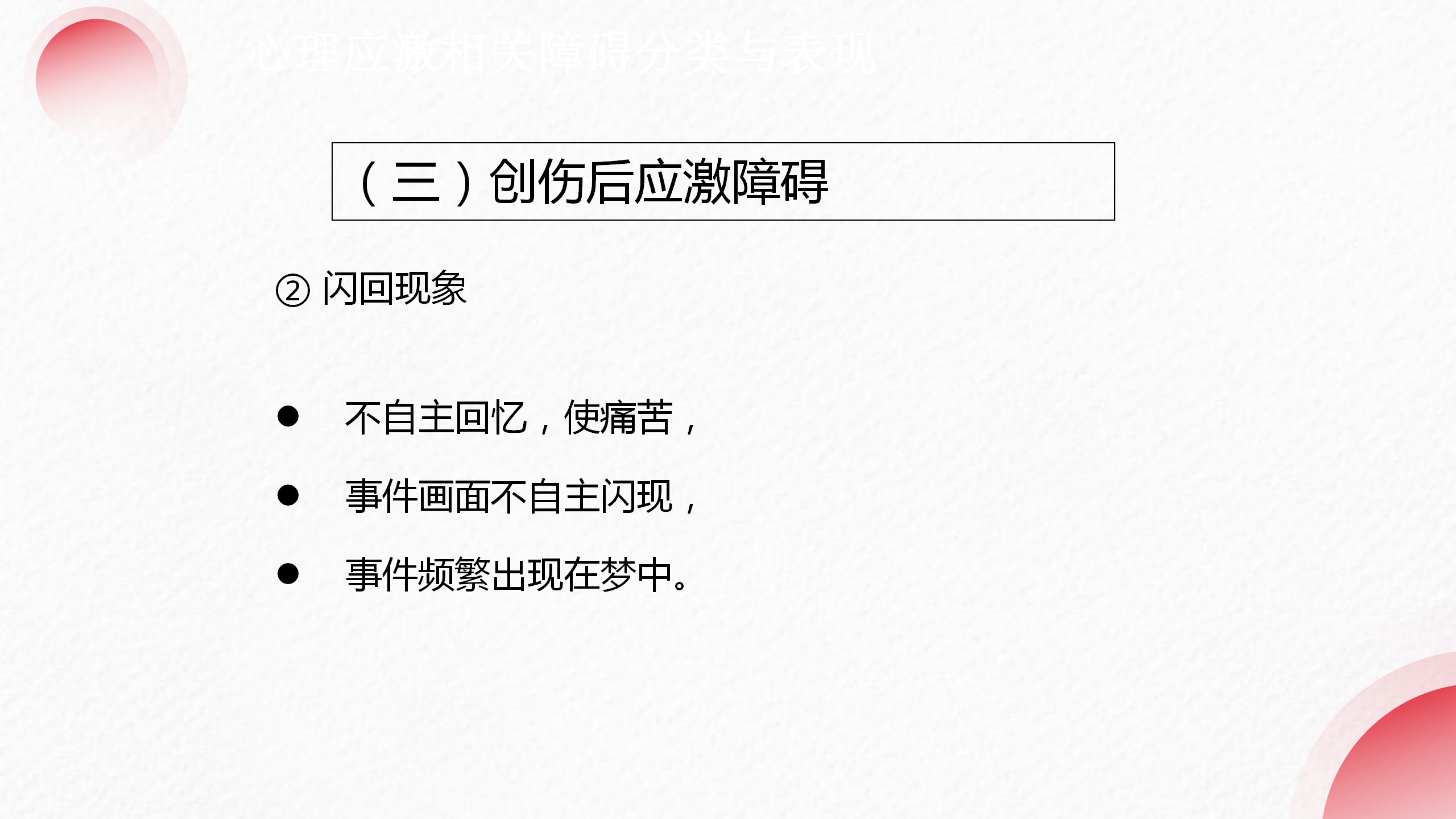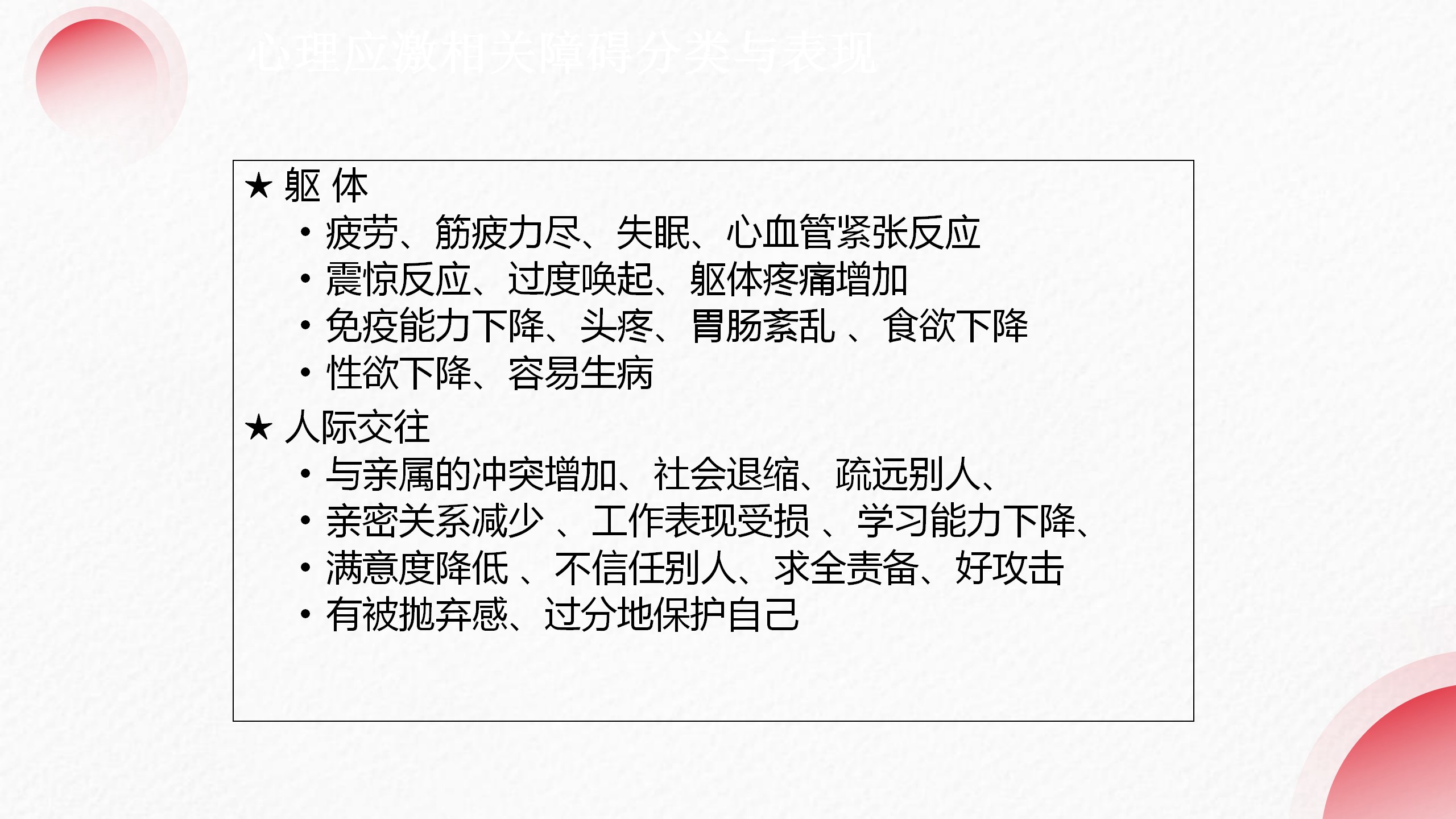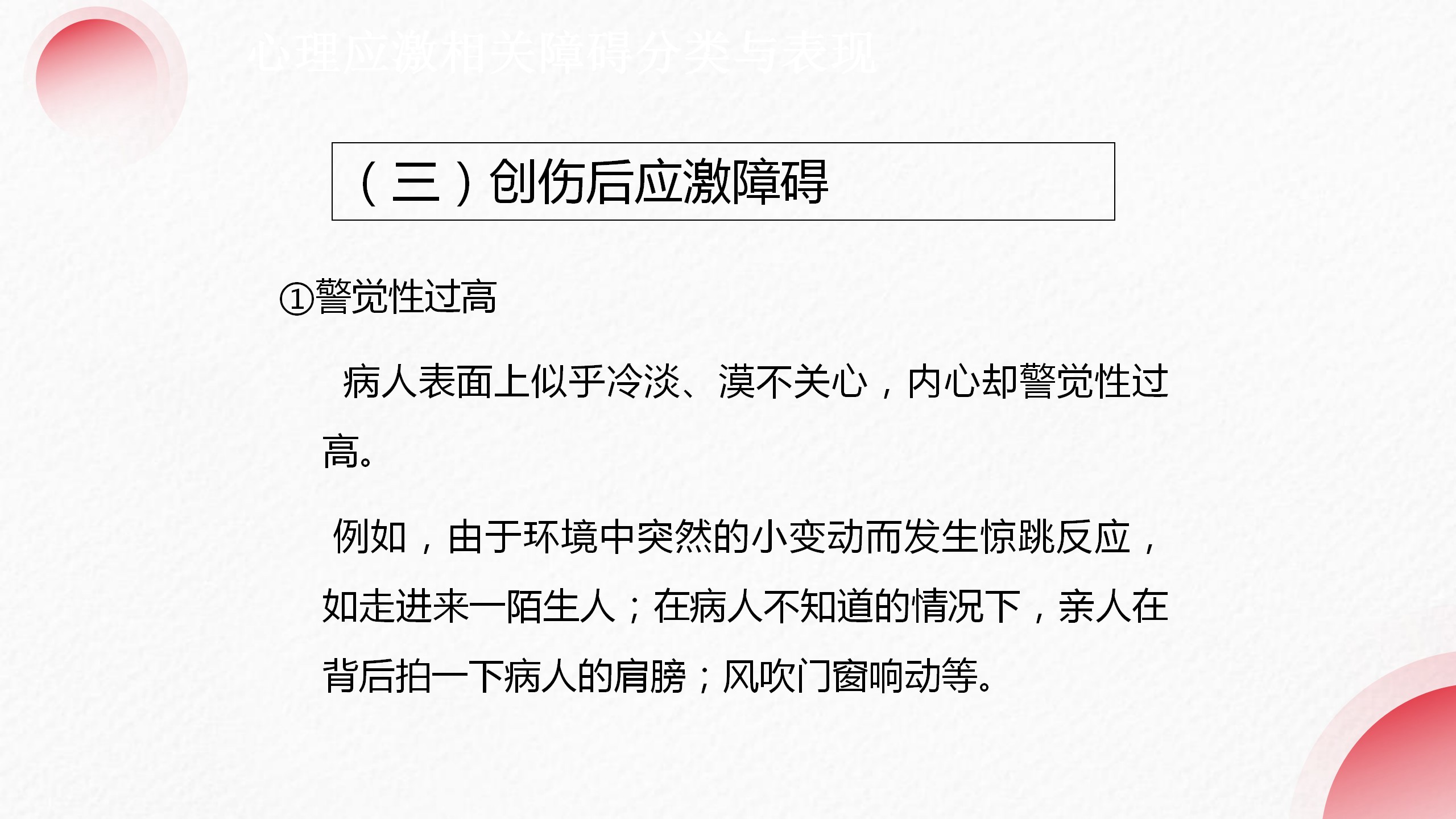 4、外界刺激内容是否泛化。即不良情绪的刺激是否仅仅局限在初始的突发事件,还是和该事件相关的事件都能刺激患者产生不良情绪。