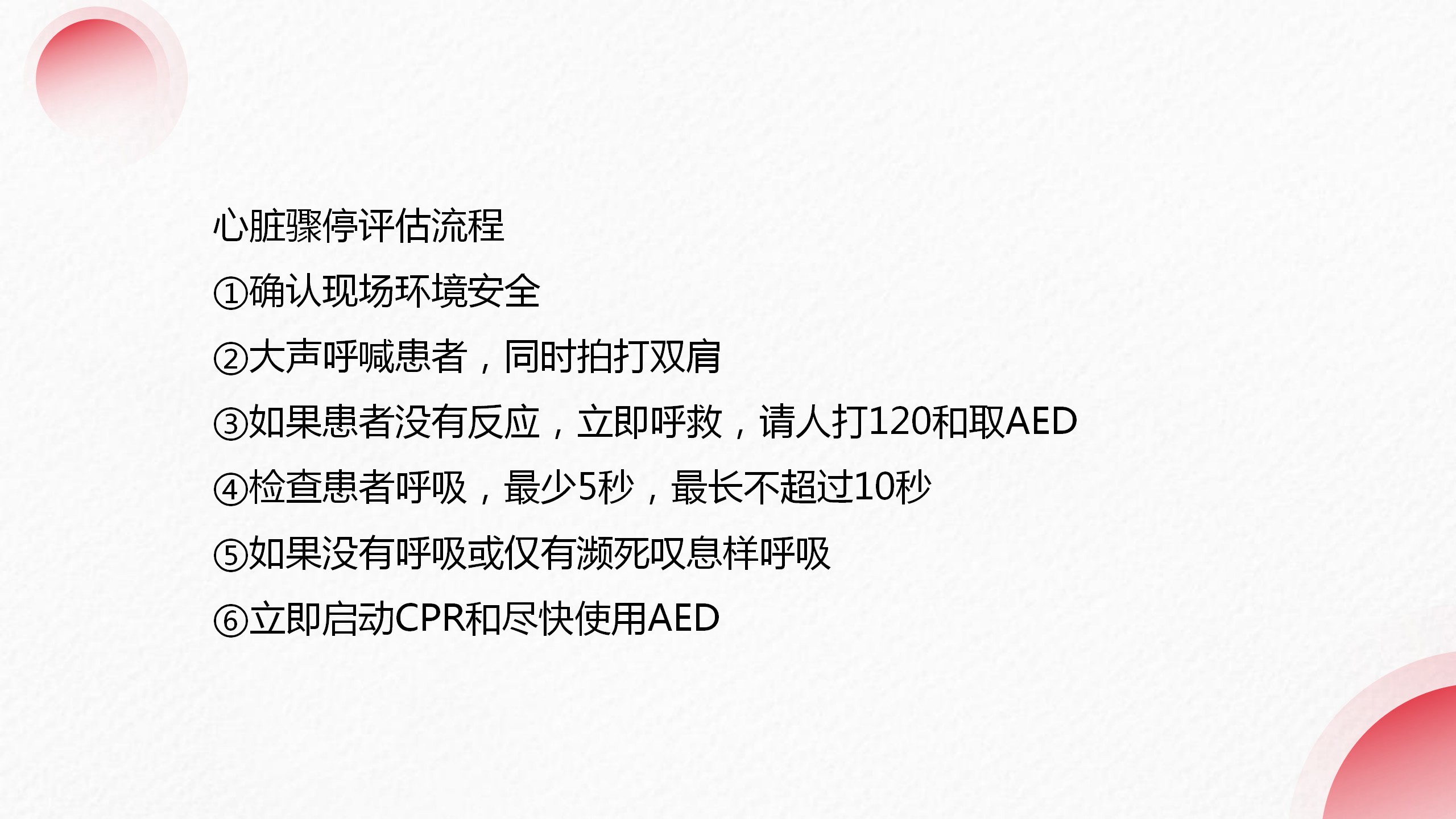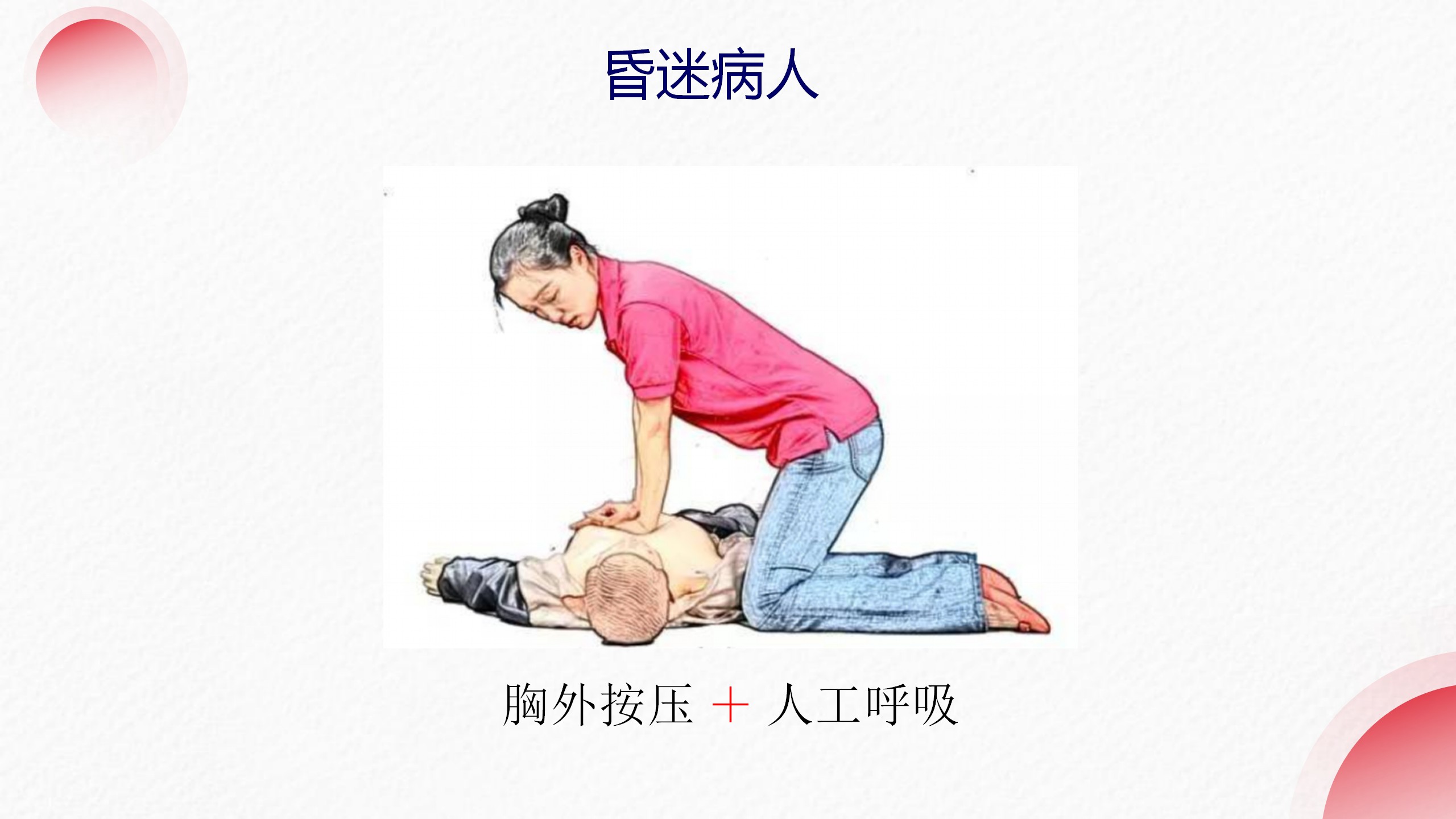 当发现有人倒地,在判断现场环境安全的情况下,立即检查伤病员的意识、呼吸和脉搏,如发现伤病员无意识、无呼吸(或叹息样呼吸)、无脉博,应立即实施心肺复苏,并拨打急救电话。当医护救助人员尚未赶到时,我们该怎么做呢?