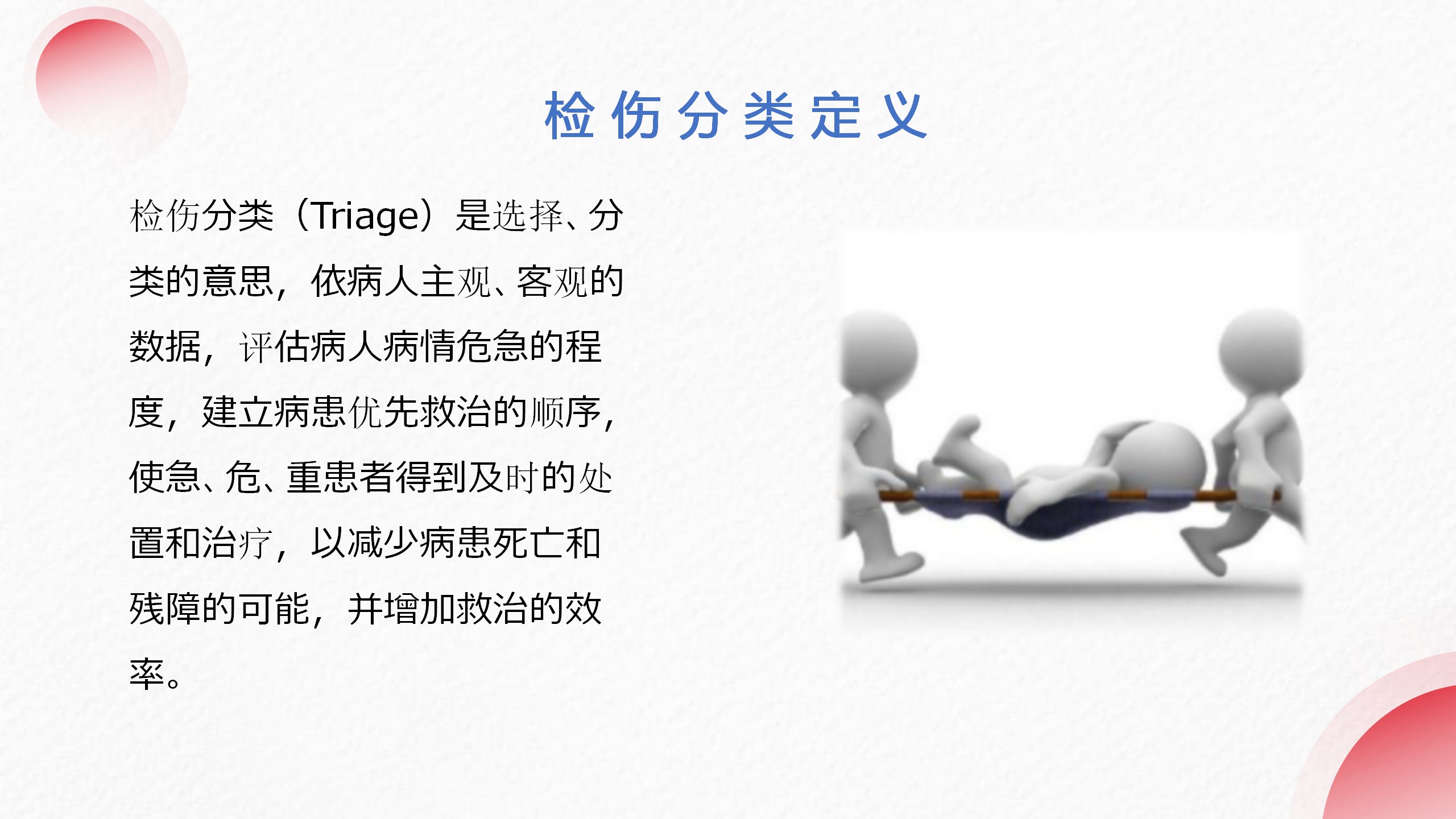 在突发的大型事故卫生事件或安全事件中,比如踩踏案、爆炸案、校园或商场及公共场所突发安全事故、交通事故(连环车祸)、工业企业火灾、森林火灾、地震、泥石流、山体滑坡等自然或非自然的灾害中,快速识别危急重症伤患非常重要。