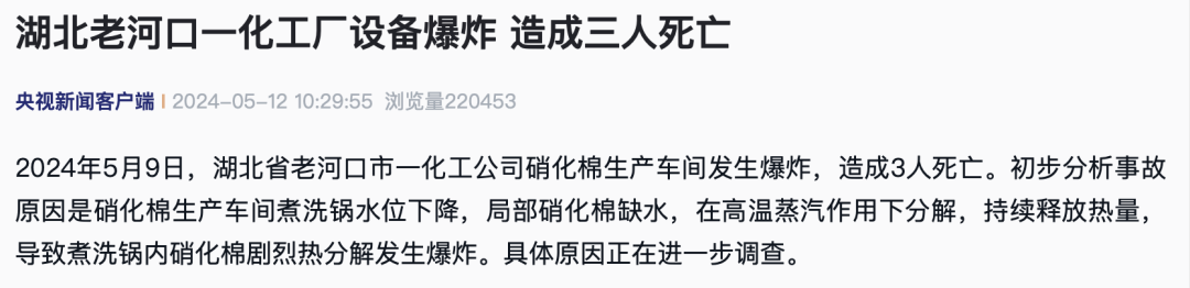 导致煮洗锅内硝化棉剧烈热分解发生爆炸