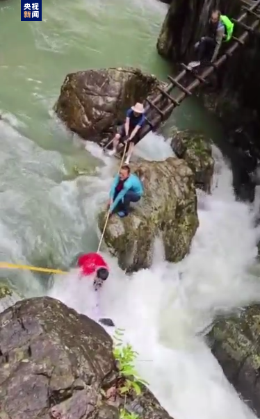 据网传视频显示,一名红衣男子和一名背着背包的女子,在借助绳索穿越一处溪流时,因为水流湍急被先后冲倒,旁边的队友焦急呼喊,并尝试将两人救起未果,随后绳索崩断。两人被冲走。