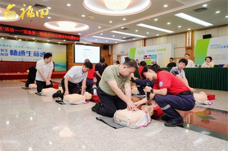与此同时,在福田区会堂四楼组织机关干部进行“应急第一响应人”AED理论和实操培训,据了解,今年总共计划培训10000名“应急第一响应人”。