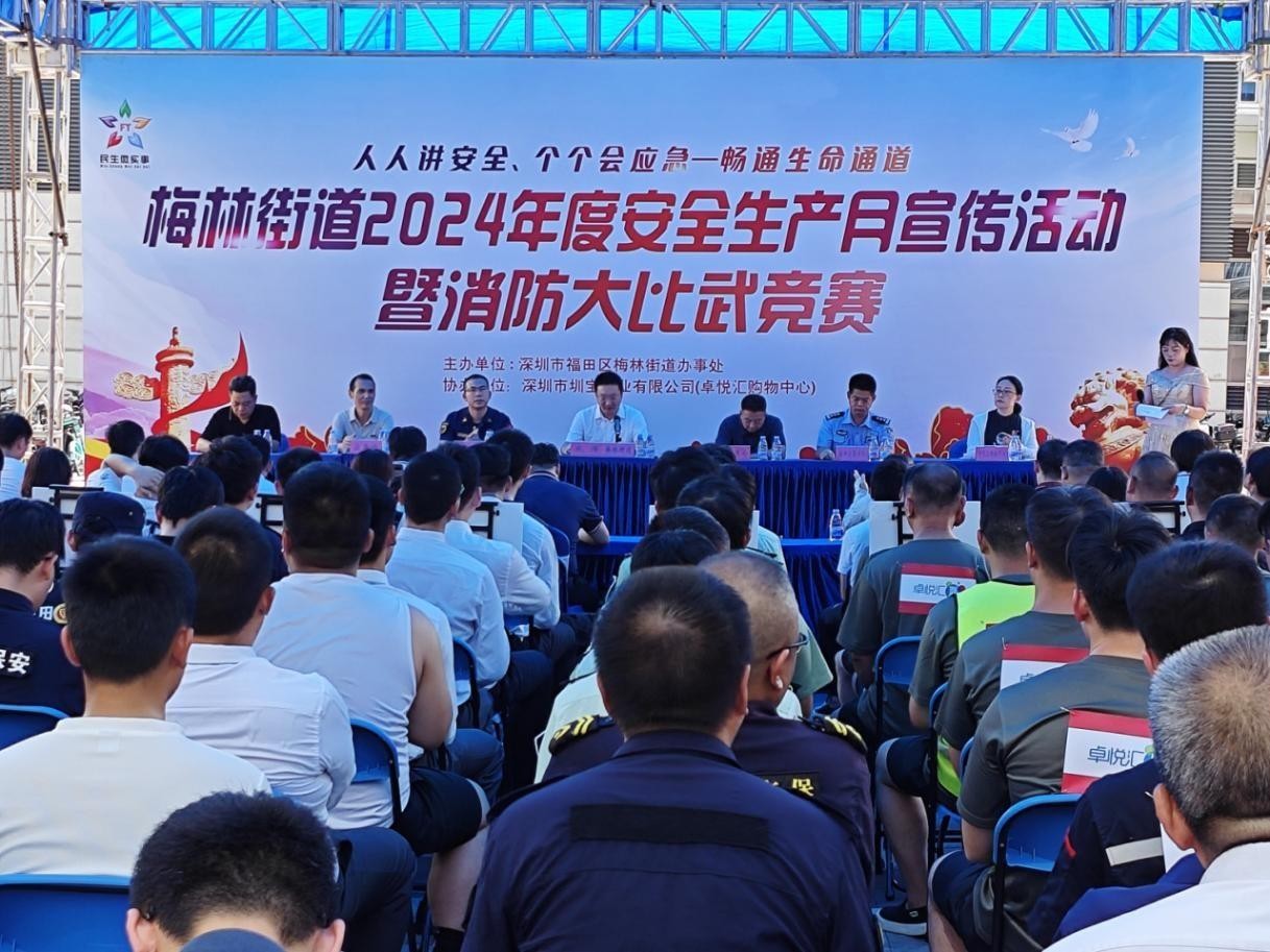 为了检验辖区应急队伍日常培训、演练情况,6月27日,深圳市福田区梅林街道在辖区卓悦汇-北广场隆重举行了2024年度安全生产月宣传活动暨消防大比武竞赛。本次活动由梅林街道办事处主办,邀请福田区应急管理局、福田区交警大队、福田消防救援大队相关负责同志参加。