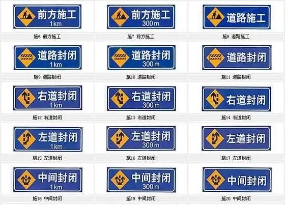 占道施工一般要设置几类交通标志,如限速牌、施工路段提醒牌、灯光等。如果是在高速公路上施工,路段限速为100公里/小时,那么施工方则要在施工工地前方2公里处就要提前设置限速标志;如果是在城市道路上,时速为60公里/小时,那么施工方至少要在一百五十米外设置限速标志。
