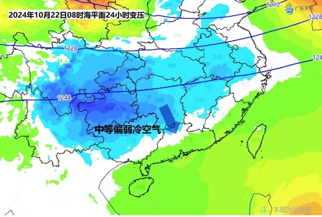 今天是霜降节气,冷空气愈加活跃,向南侵袭的脚步也越来越频繁,今天(23日)早晨,新一股冷空气的前锋已到达南岭以北,已经自北向南推进影响广东。