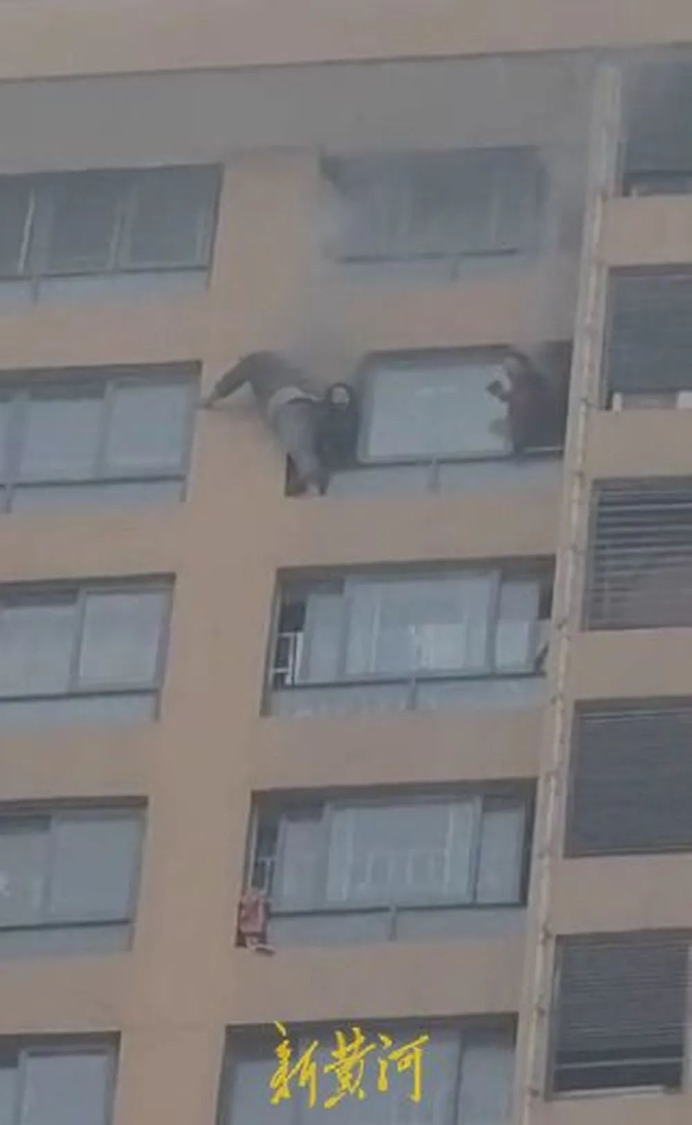事发时,有多名被困人员翻至窗外等待救援
