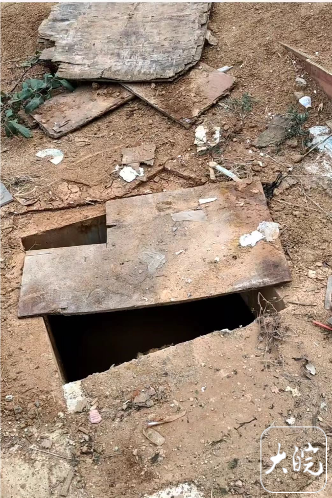 化粪池上方仅盖着一层破损的木板