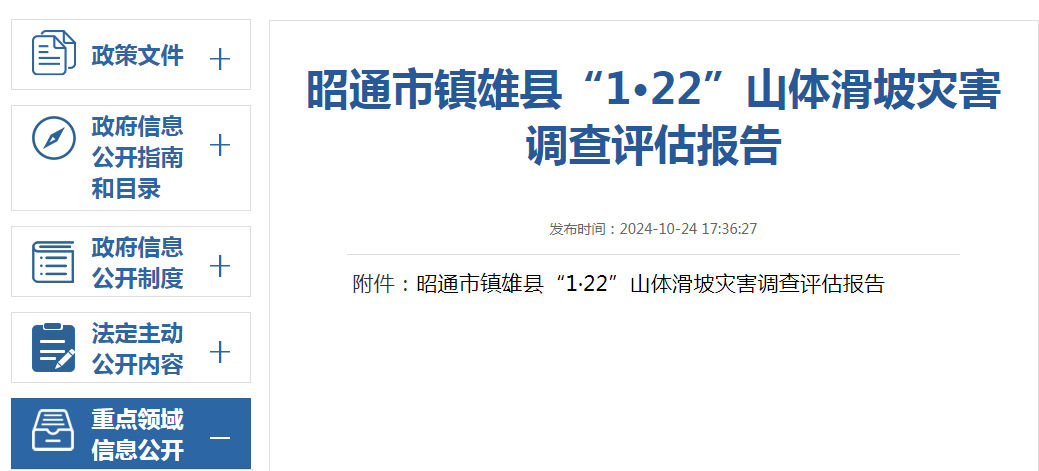 《昭通市镇雄县“1·22”山体滑坡灾害调查评估报告》