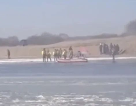 2022年12月28日,辽宁锦州,一男子在冰上行走时冰面破裂掉入冰水中,情况十分危急。消防救援人员到达现场后立即开展施救,经过紧张救援,最终把被困男子拉出冰窟,营救上岸,交由医护人员进行救治。