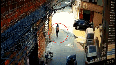 一女子被二楼抛下来的物体