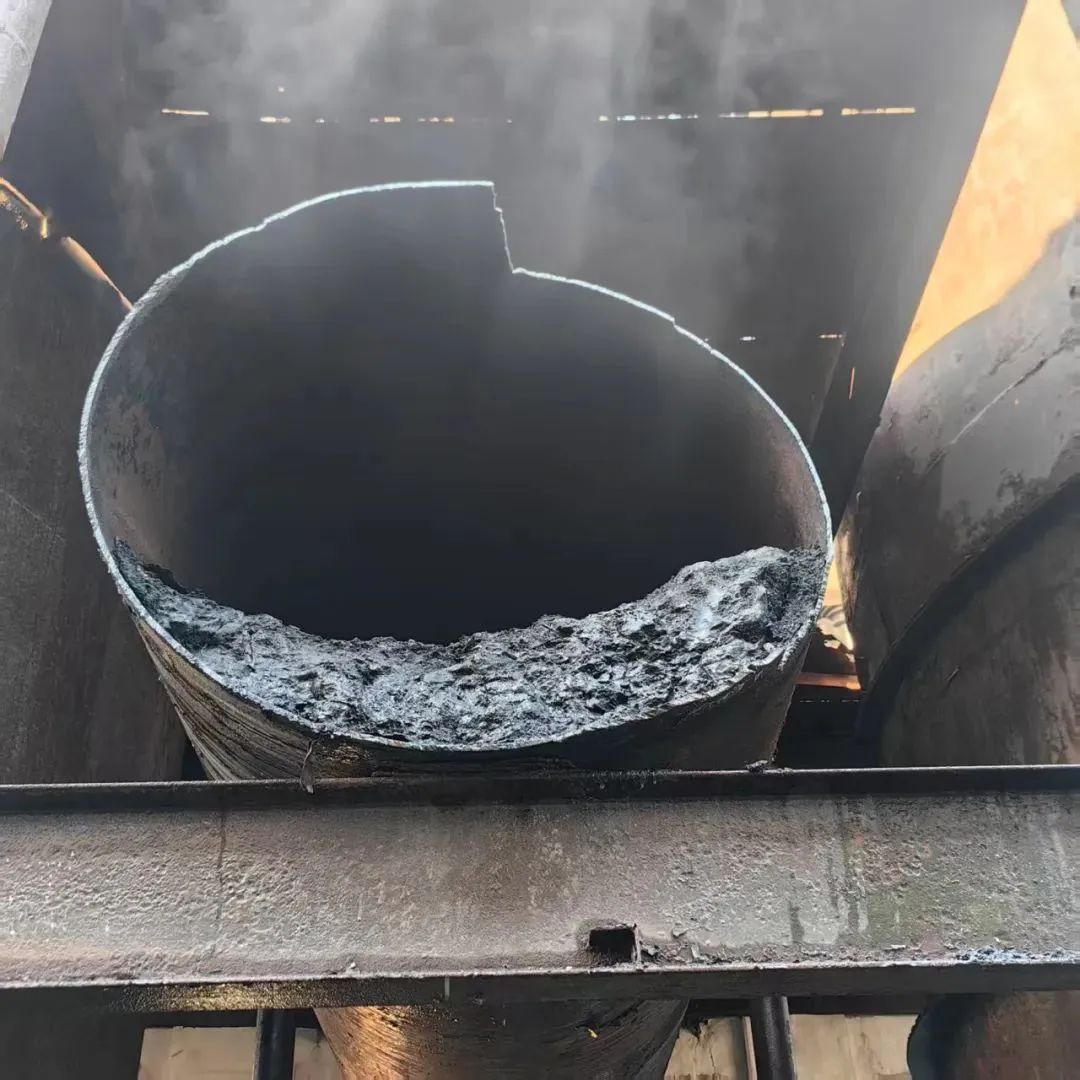 切割产生的火花导致管道内的焦油煤渣冒烟