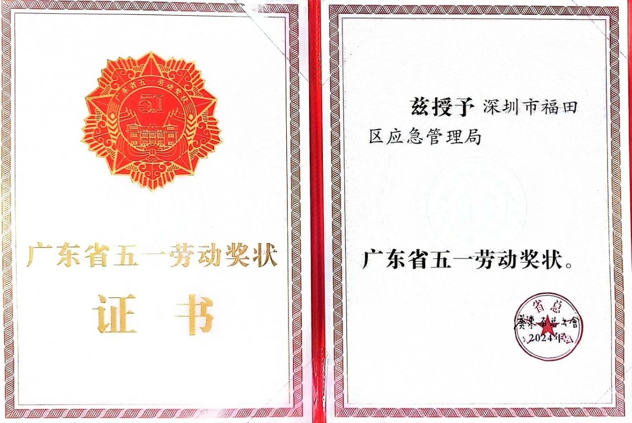 2024年5月深圳市福田区应急管理局被广东省总工会授予“广东省五一劳动奖状”
