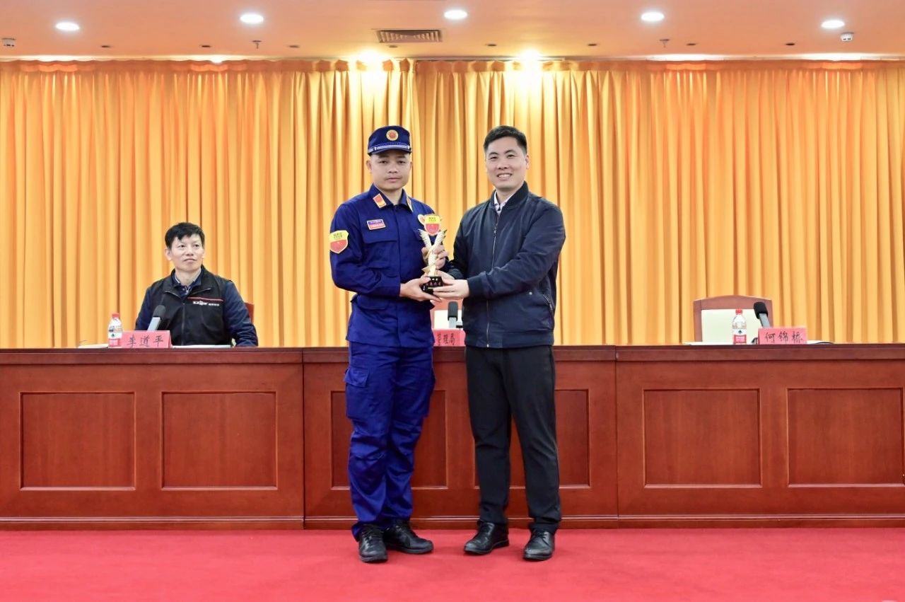 会上,锦桥同志为荣获福田区“应急之星”称号的下梅林北分队颁发了流动奖杯。自2024年起,福田区应急管理局设立“应急之星”奖项,以表彰年度综合评比第一名的队伍,激励各分队积极进取、勇于争先。