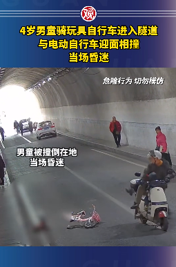 一名4岁男童骑玩具自行车进入隧道
