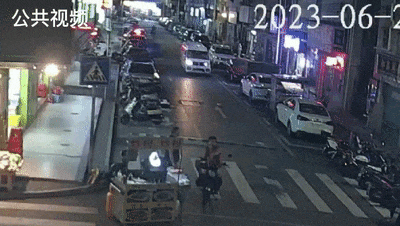 ▲6岁儿童突然奔跑穿过楼栋与停放车辆,径直冲向马路,与一辆轻型货车发生碰撞,事故造成儿童受伤