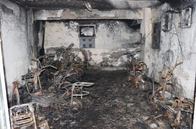 楼道停放的电动自行车一旦起火,毒烟会迅速向上蔓延直接阻断逃生通道,极易造成人员伤亡甚至群死群伤事故。