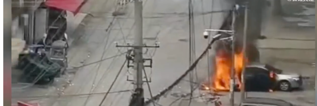 同时路边一辆轿车被引燃