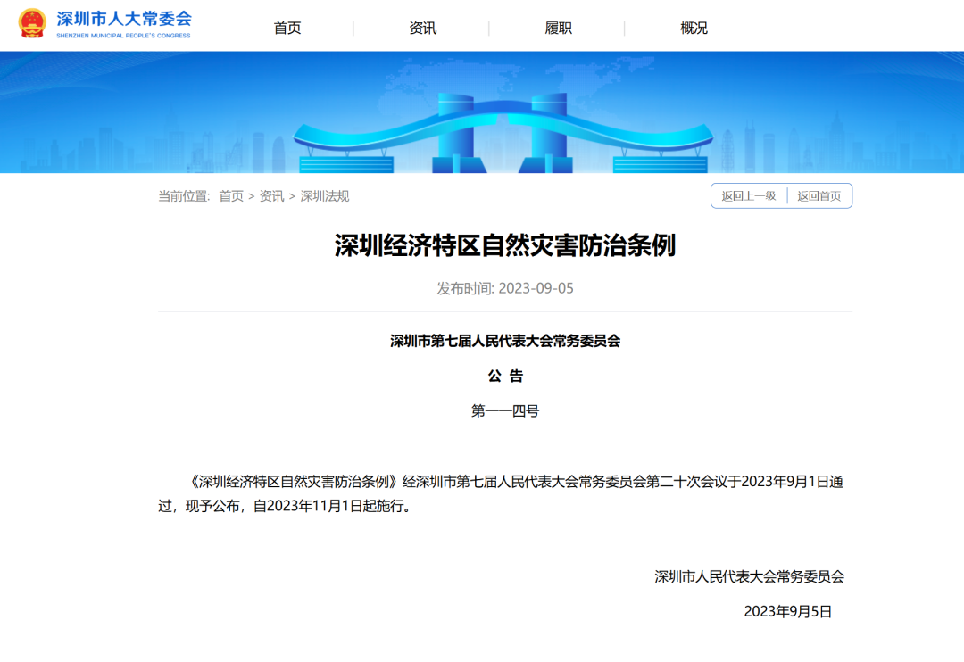 《深圳经济特区自然灾害防治条例》
