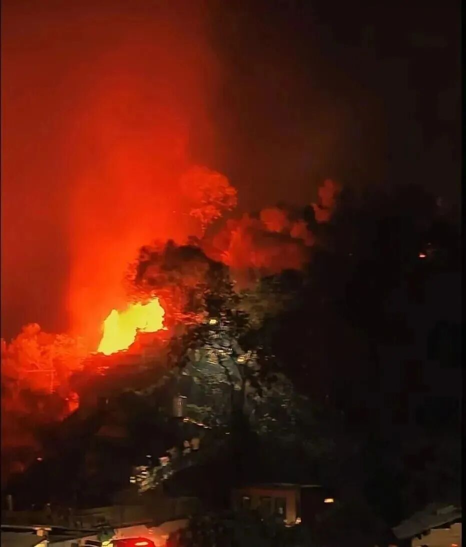 火星意外掉落引燃山坡枯草