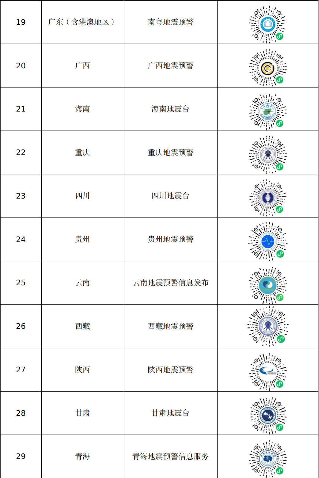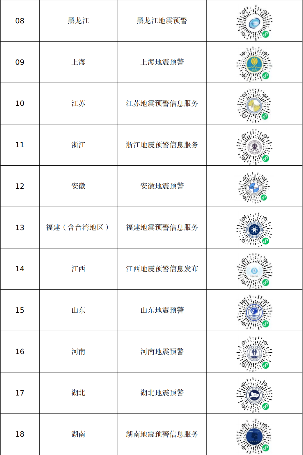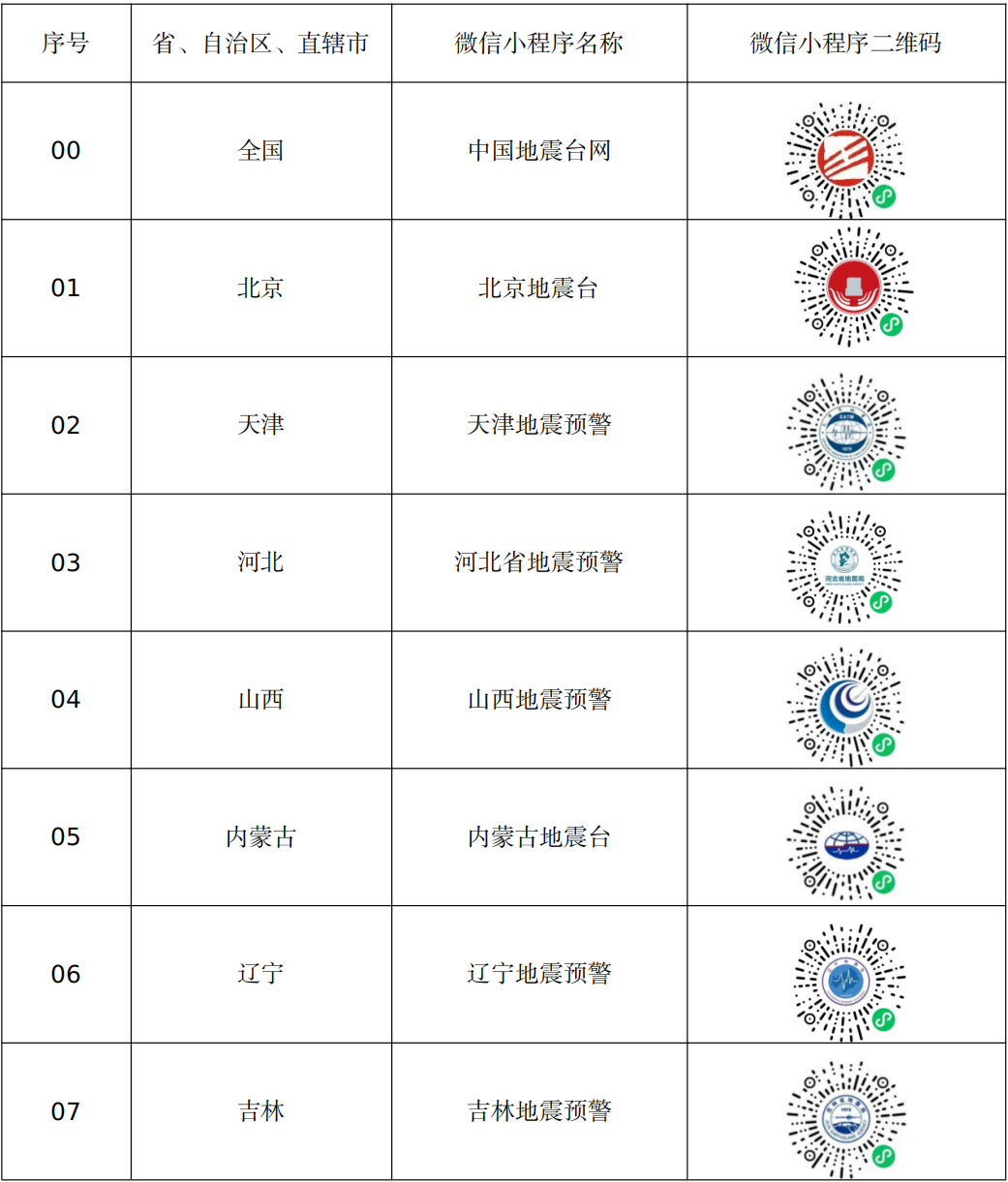 地震预警信息的接收渠道主要包括手机、电视、专用终端、广播等,其中,专用终端、广播预警无需公众进行设置,电视预警需按预警功能启动界面提示进行激活,手机预警需根据提示设置接收预警信息功能。表 A.1 给出了目前广泛使用的手机微信预警小程序列表及设置方法。