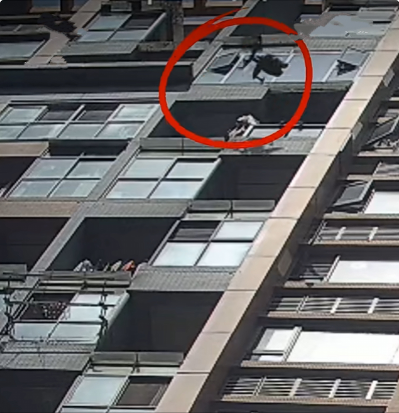 所幸楼下群众及时躲避