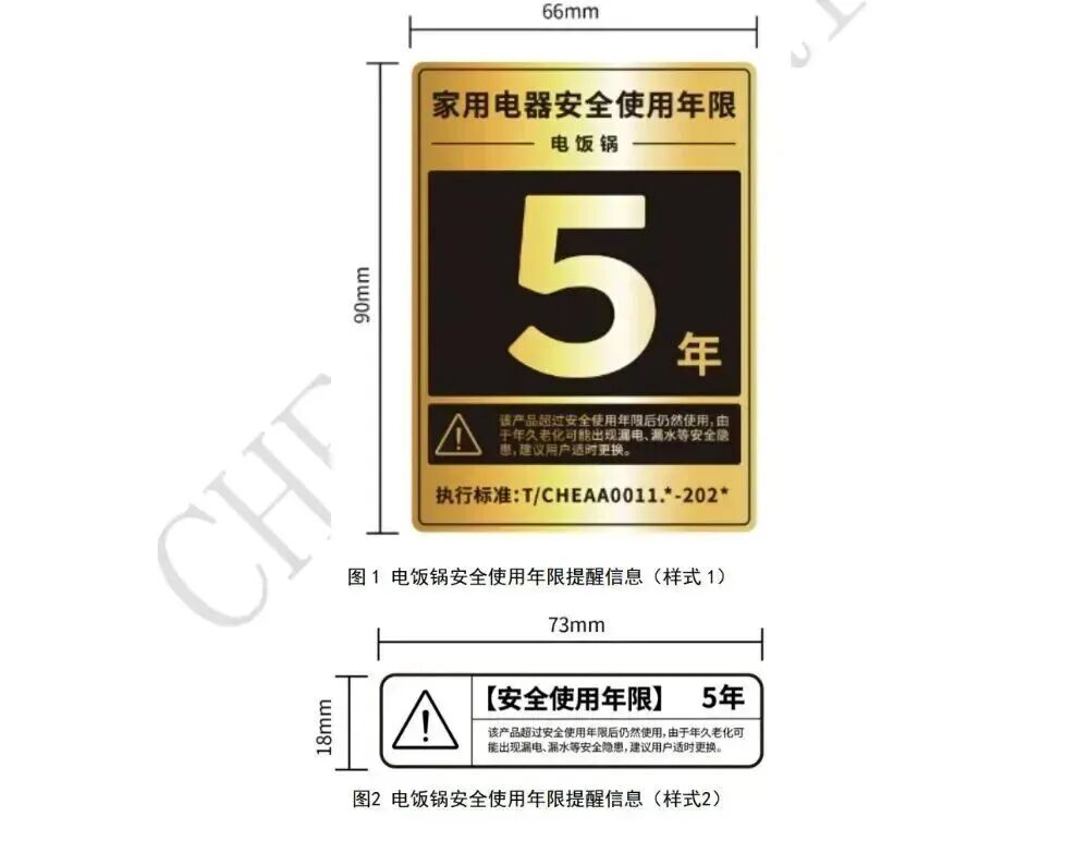 ▲电饭锅的两种安全使用年限提醒信息
