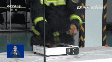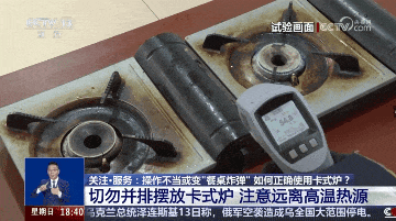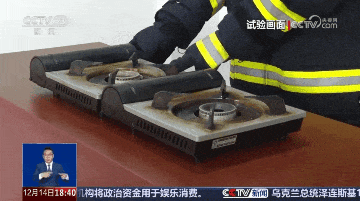 ▲实验人员将两个卡式炉并排摆放,进行试验。图源:扬州消防