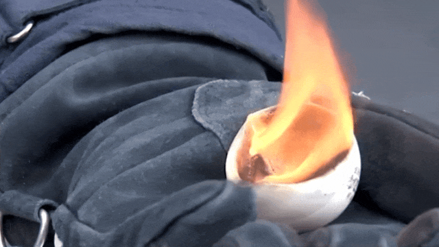 消防员模拟自热包受损情况。图源:福建日报