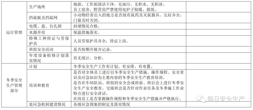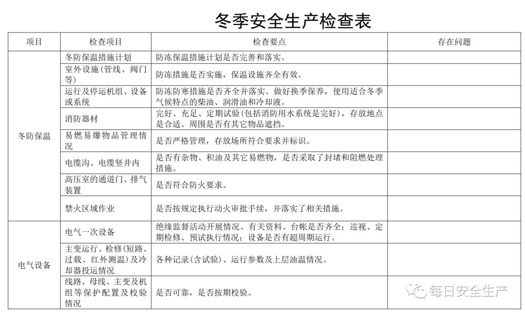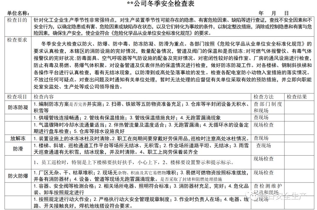 五是强化冬季巡检。严格落实岗位巡回检查制度和交接班制度,明确冬季安全生产的防护重点,完善操作人员全员、全过程、全方位、全天候的“四全”巡检制度,对巡检中发现的薄弱环节,应作为日常重点监控对象。