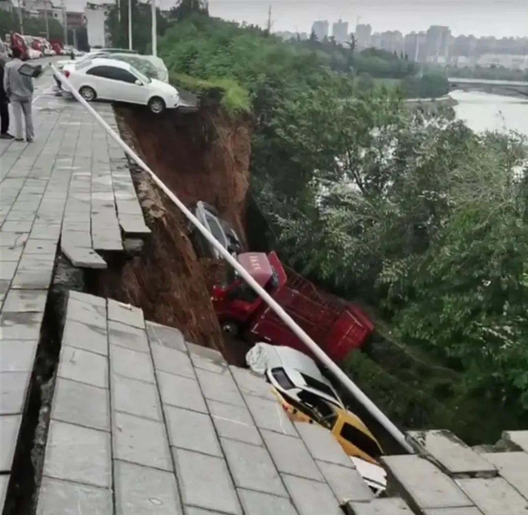2023年8月27日,河南禹州一处停车场的地面发生坍塌,停在上面的小型货车和多辆小车坠落到坡下方数米深处。