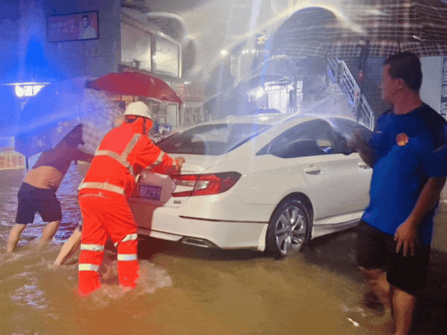 区三防指挥部迅速调集周边监控视频,派出无人机抵近侦察,同时龙岗交警大队全员出动,出动警力223人次,封闭路口20处,并安排人员值守;龙城街道、龙岗街道、区消防救援大队安排人力对重点路口、重点路段逐个巡查巡视,确保深度积水车辆无人被困。龙岗公安分局调动600名警力参与灾害处置。据不完全统计,共救援拖车40辆次,处置水淹车辆182辆。