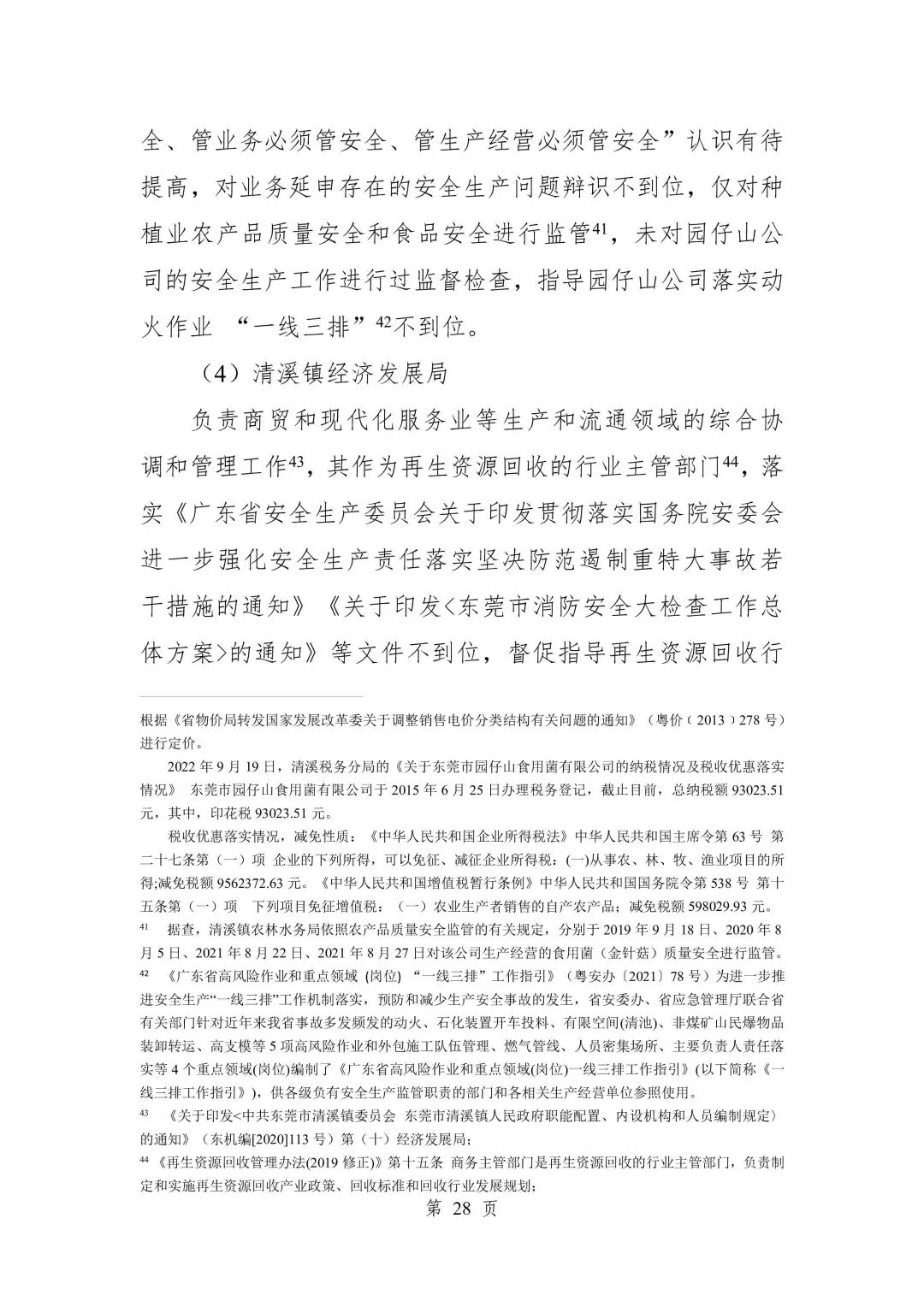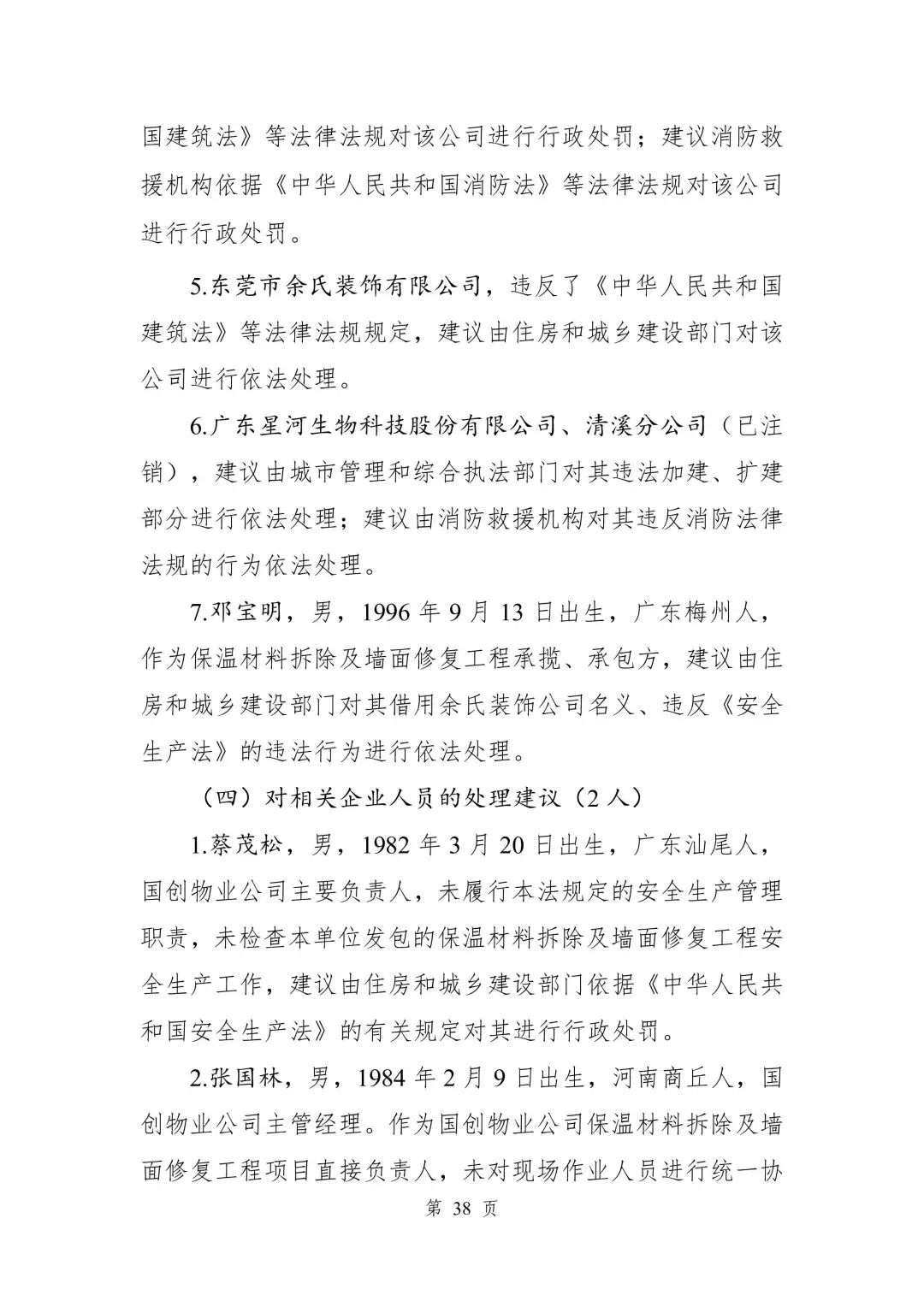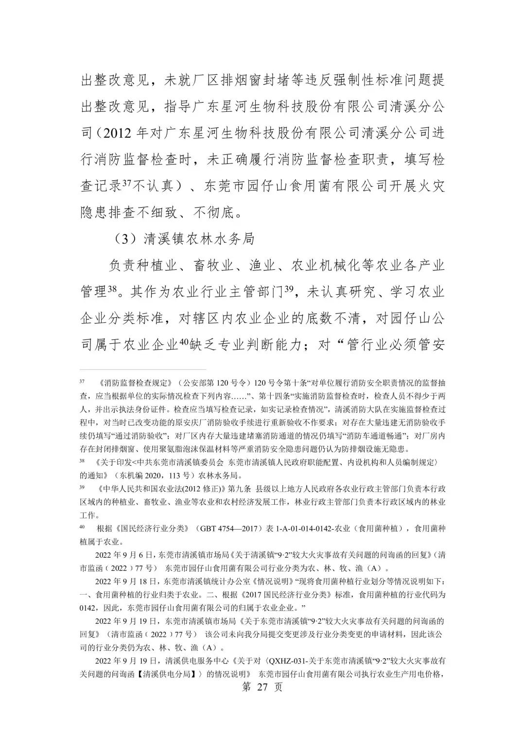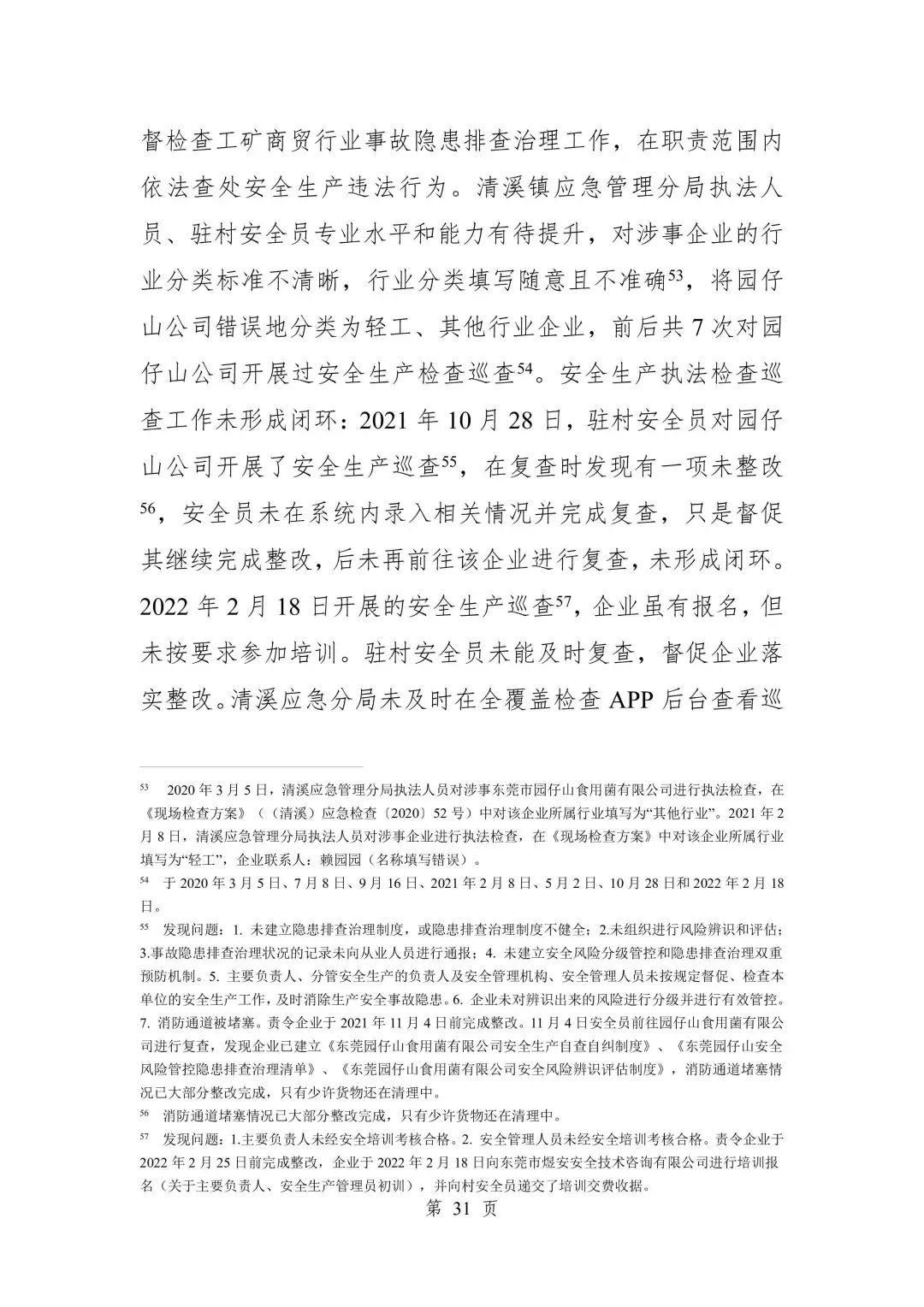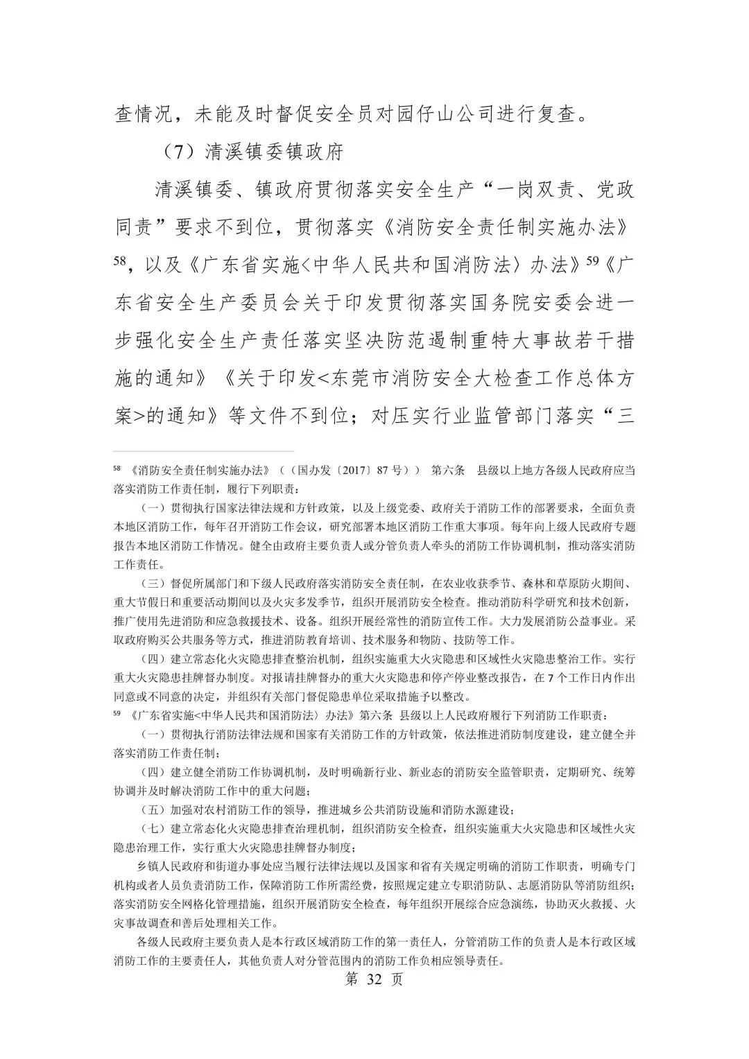 纪检监察机关对事故属地党委政府、相关职能部门公职人员共25人予以追责问责,具体如下:1. 叶锦锐,东莞市清溪镇党委书记,给予严肃批评,责令作出书面检查。2. 沈志攀,东莞市清溪镇党委副书记、镇长,给予政务警告处分。3. 林海鹏,东莞市清溪镇党委副书记,给予政务记大过处分。4. 蔡运洪,东莞市清溪镇副镇长,给予政务记过处分。5. 梁伟光,东莞市清溪镇党委委员,给予诫勉处理。6. 方国亮,东莞市消防救援支队党委委员、副支队长,根据干部管理权限,移交有关单位处理。7. 林映鹏,东莞市农业农村局党组副书记,给予严肃批评,责令作出书面检查。8. 黄龙昌,东莞市应急管理局党委委员、副局长,给予严肃批评,责令作出书面检查。9. 陈志扬,东莞市商务局党组成员、副局长,给予严肃批评,责令作出书面检查。10. 陈世光,东莞市城市管理综合执法局党组成员、副局长,给予严肃批评,责令作出书面检查。11. 邵世华,东莞市清溪消防大队大队长,根据干部管理权限,移交有关单位处理。12. 王东鲁,时任东莞市清溪消防大队大队长,给予政务记过处分。13. 徐群山,东莞市清溪镇农林水务局局长,给予政务记过处分。14. 卓华州,东莞市清溪镇农林水务局副主任,给予政务记过处分。15. 黄旭光,东莞市清溪镇应急分局局长,给予政务警告处分。16. 林琦清,东莞市清溪镇应急分局副局长,给予政务记过处分。17. 李勇辉,东莞市清溪镇经济发展局局长,给予政务警告处分。18. 黄效明,东莞市清溪镇经济发展局副主任,给予政务记过处分。19. 李德文,东莞市清溪镇城管分局局长,因其他违纪行为合并处理,给予党内警告、政务记过处分。20. 曾茂泉,时任东莞市清溪镇城管分局局长,给予党内警告处分。21. 殷自兴,东莞市清溪镇长山头村党总支书记兼村委会主任、经联社理事长,给予留党察看二年处分,并按程序终止其村委会主任、理事长职务。22. 殷满和,东莞市清溪镇长山头村安全办主任兼经联社理事,给予留党察看二年处分,并按程序终止其理事职务、免去安全办主任职务。23. 殷肇荣,东莞市清溪镇长山头村党总支委员兼村委会副主任,给予党内严重警告处分。24. 殷任华,时任东莞市清溪镇长山头村党支部书记,给予党内严重警告处分。25. 殷伟明,时任东莞市清溪镇长山头村委会主任兼经联社理事长,给予党内严重警告处分。△上下滑动查看▽