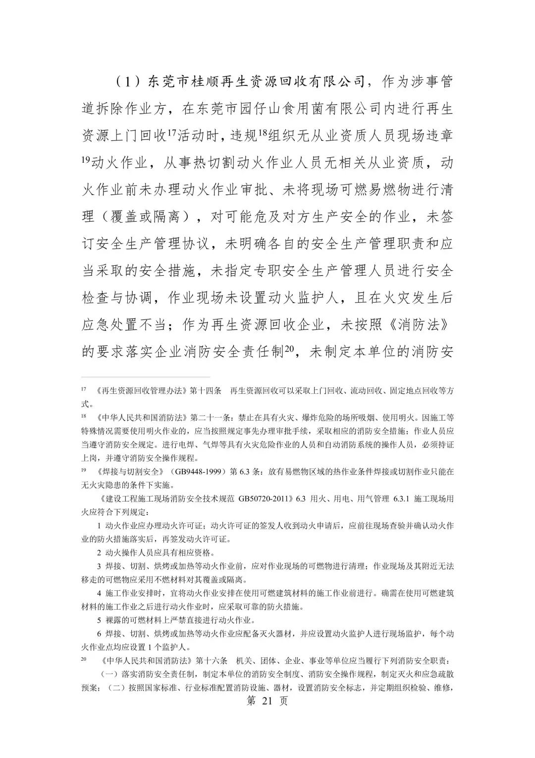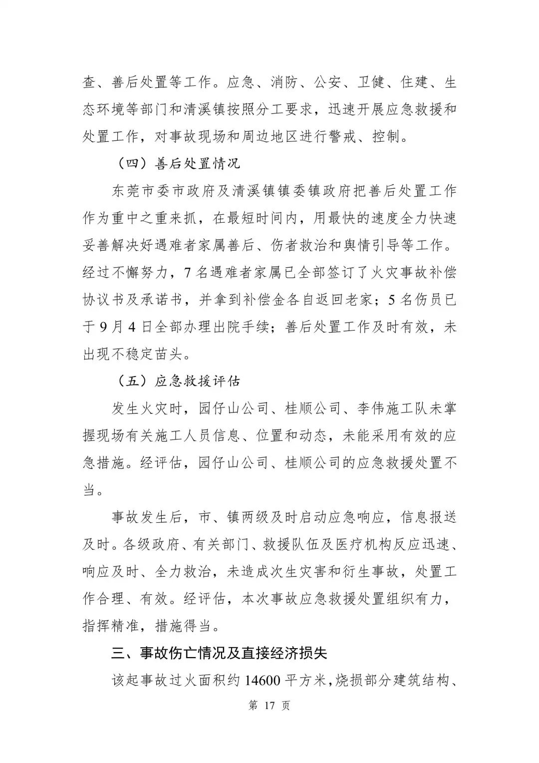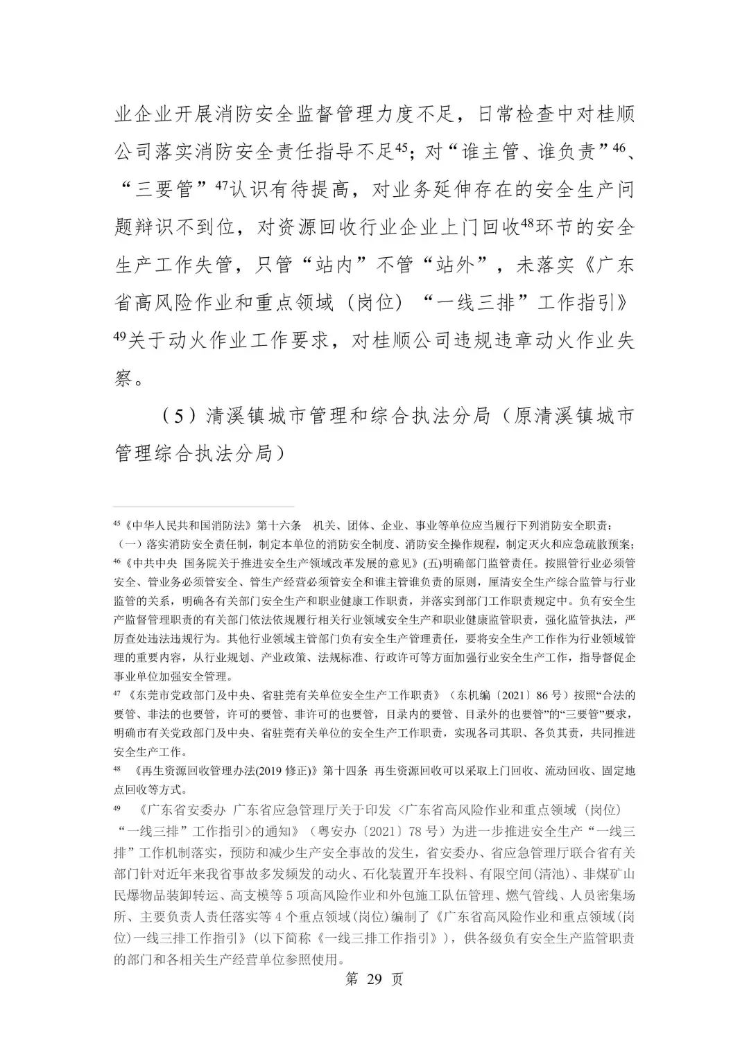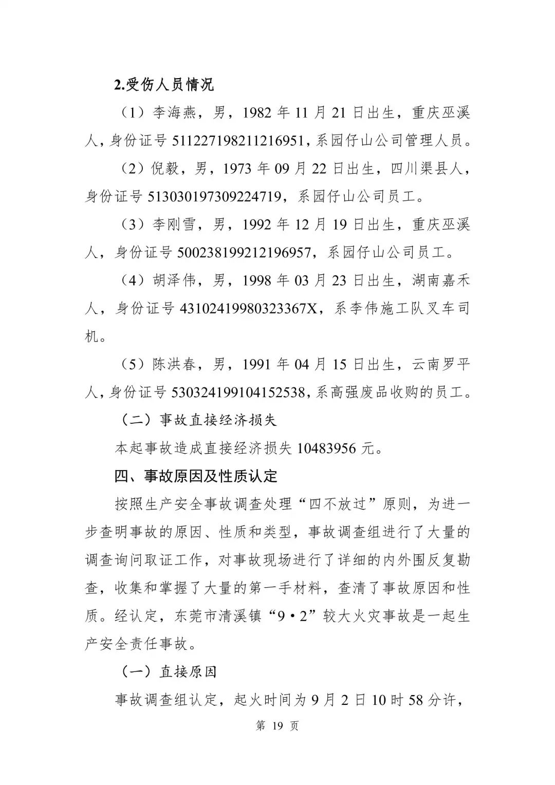 近日,东莞市政府批复同意了东莞市清溪镇“9·2”较大火灾事故调查报告。经事故调查组调查认定,东莞市清溪镇“9·2”较大火灾事故是一起由于企业消防安全主体责任不落实,违章动火作业而引发的生产安全责任事故。