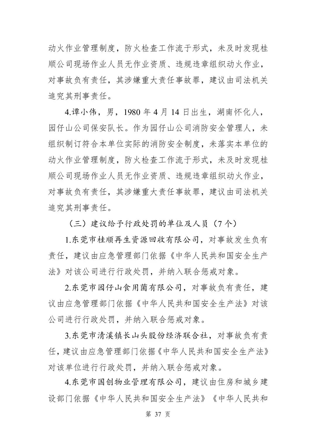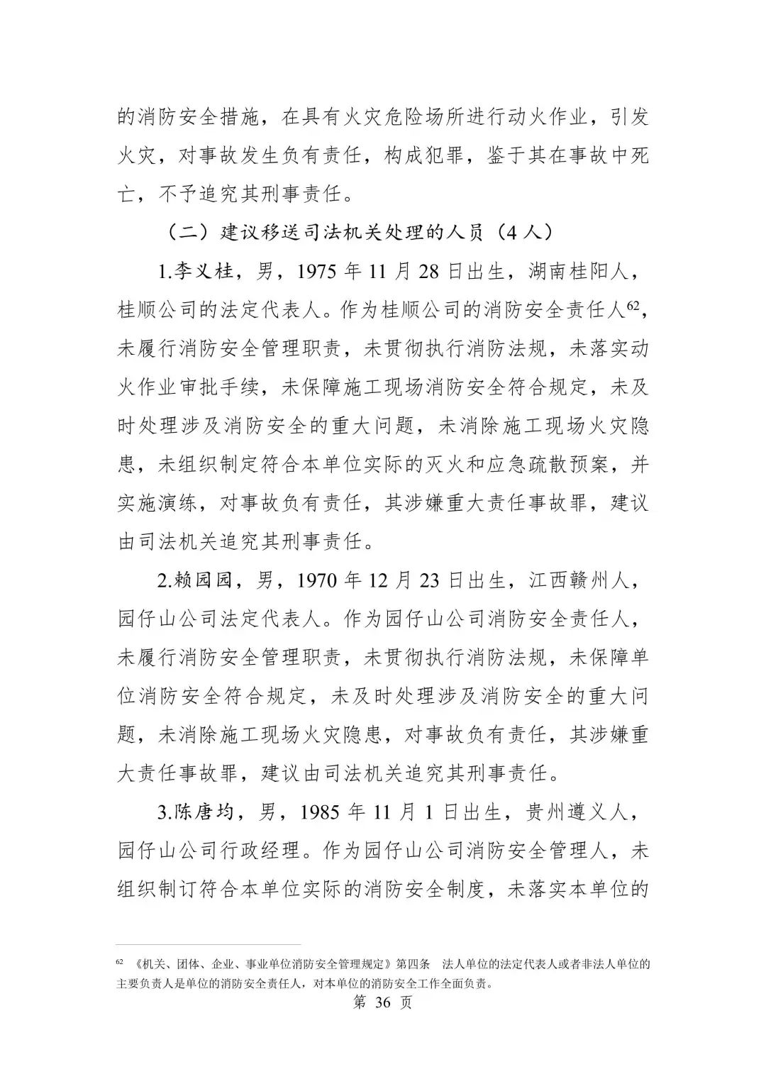 1.李*桂,男,桂顺公司的法定代表人、消防安全责任人。2.赖*园,男,园仔山公司法定代表人、消防安全责任人。3.陈*均,男,园仔山公司行政经理、消防安全管理人。4.谭*伟,男,园仔山公司保安队长、消防安全管理人。(二)予以追责问责人员