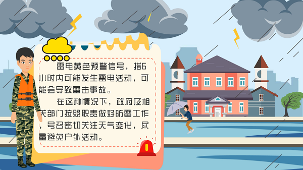 雷电黄色预警信号指6小时内可能发生雷电活动,且可能导致雷击事故。在这种情况下,政府及相关部门应按照职责做好防雷工作,号召公众密切关注天气变化,尽量避免户外活动。