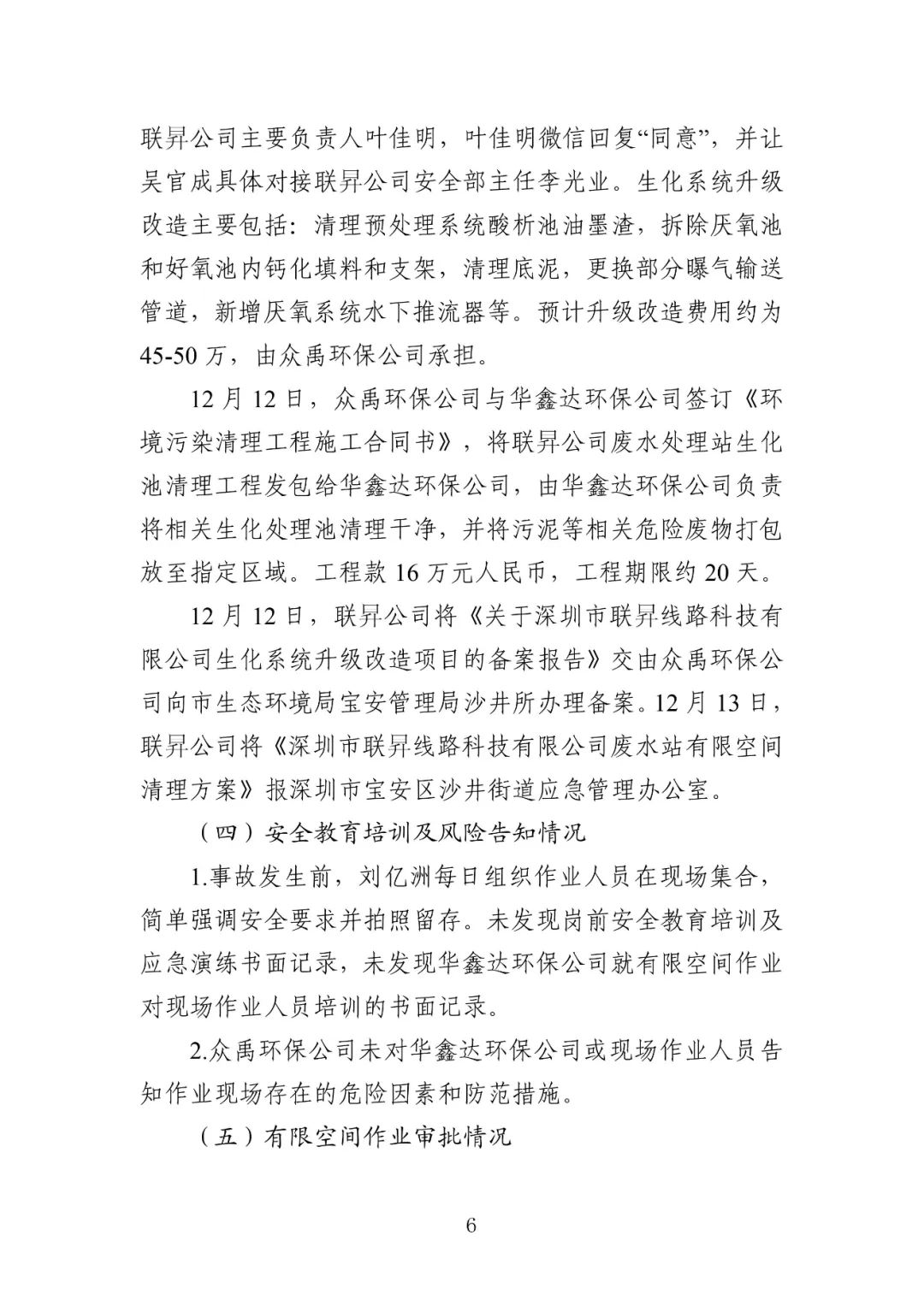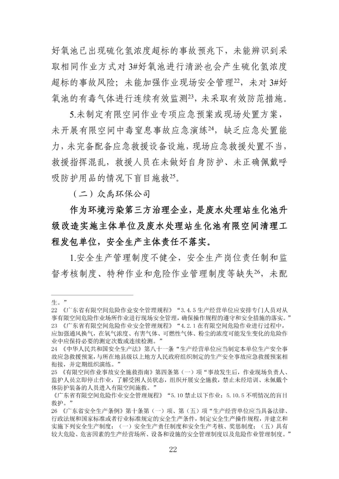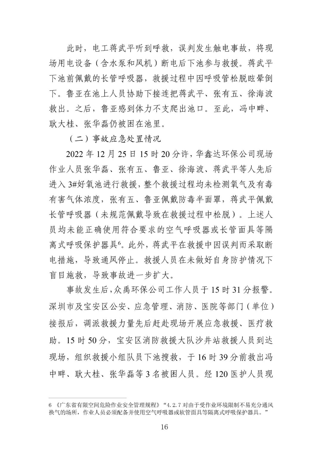 废水处理站生化池清理工程作业单位——深圳市华鑫达环保科技有限公司未提供符合国家标准或者行业标准的有限空间作业呼吸防护用品在已出现硫化氢浓度超标的事故预兆的情况下,未引起足够重视并采取有效措施消除事故隐患废水处理站生化池升级改造实施主体单位、废水处理站生化池有限空间清理工程发包单位——深圳市众禹环保科技有限公司