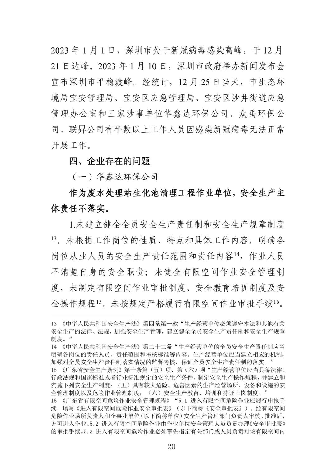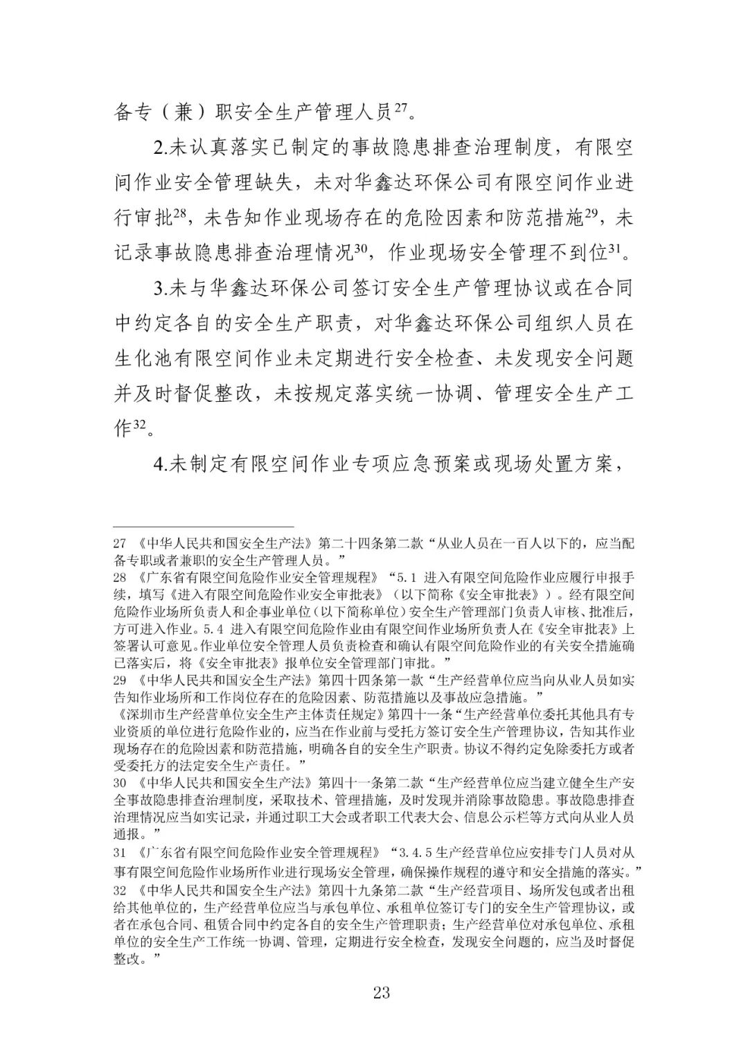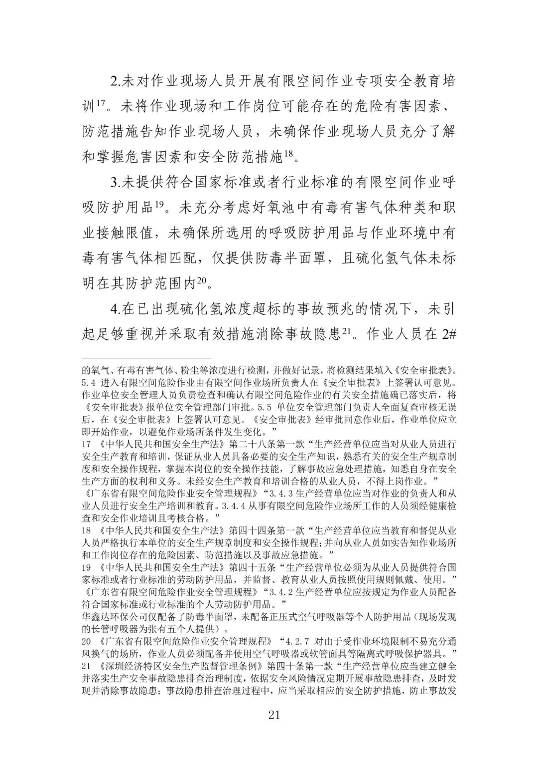 废水处理站生化池清理工程作业单位——深圳市华鑫达环保科技有限公司未提供符合国家标准或者行业标准的有限空间作业呼吸防护用品在已出现硫化氢浓度超标的事故预兆的情况下,未引起足够重视并采取有效措施消除事故隐患废水处理站生化池升级改造实施主体单位、废水处理站生化池有限空间清理工程发包单位——深圳市众禹环保科技有限公司