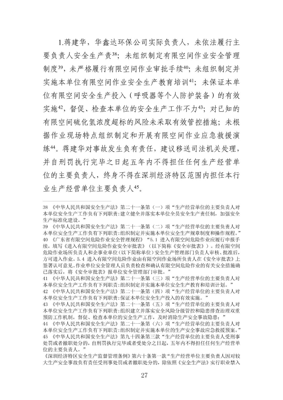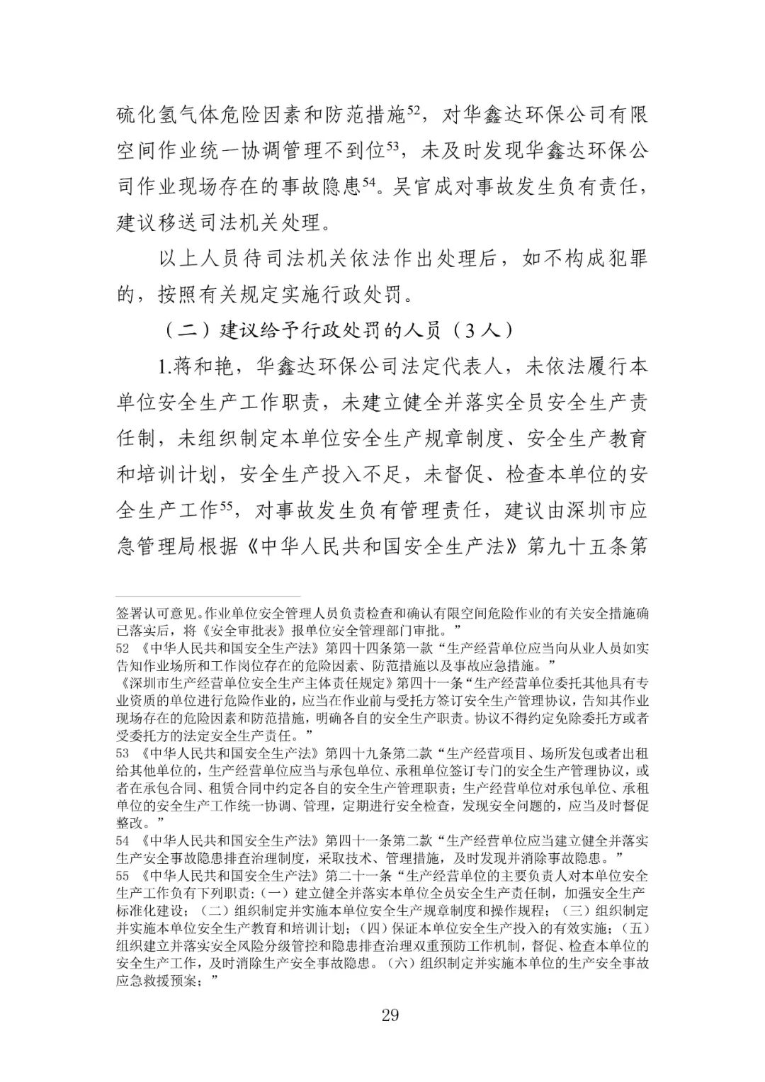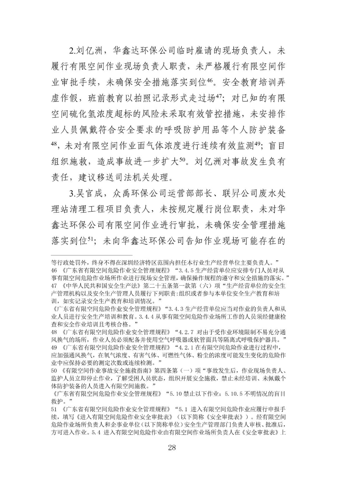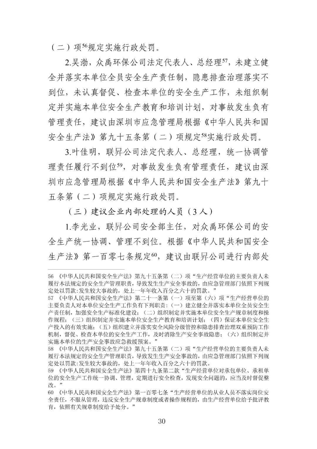 公安机关依法对3名涉嫌犯罪的有关责任人采取了强制措施,并移送司法机关依法追究刑事责任。具体包括:华鑫达环保公司实际负责人蒋建华,华鑫达环保公司临时雇请的现场负责人刘亿洲,众禹环保公司运营部部长、联昇公司废水处理站清理工程项目负责人吴官成。深圳市相关部门依法对华鑫达环保公司、众禹环保公司、联昇公司等3家单位,以及华鑫达环保公司法定代表人蒋和艳,众禹环保公司法定代表人、总经理吴渤,联昇公司法定代表人、总经理叶佳明等3名人员实施行政处罚。