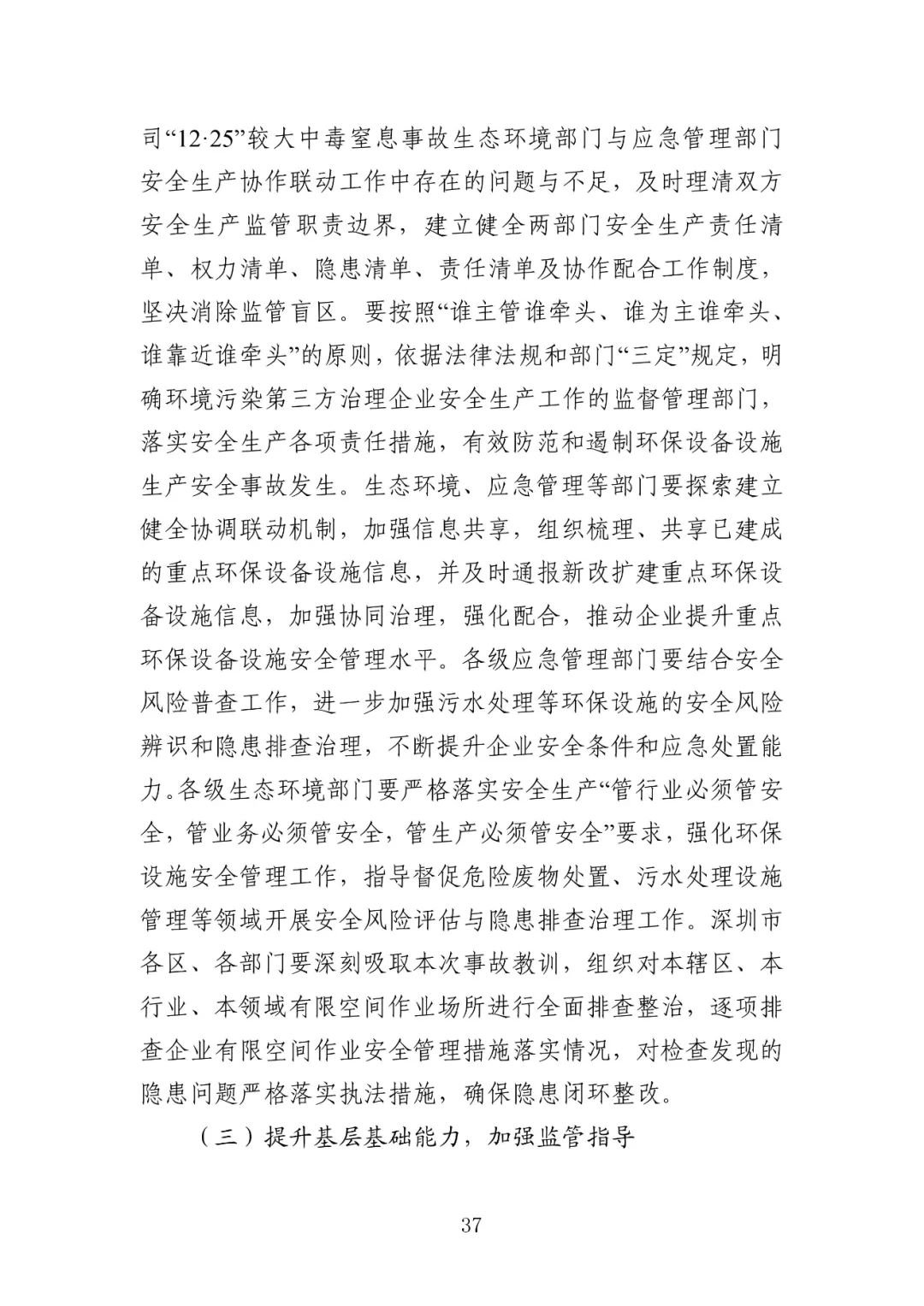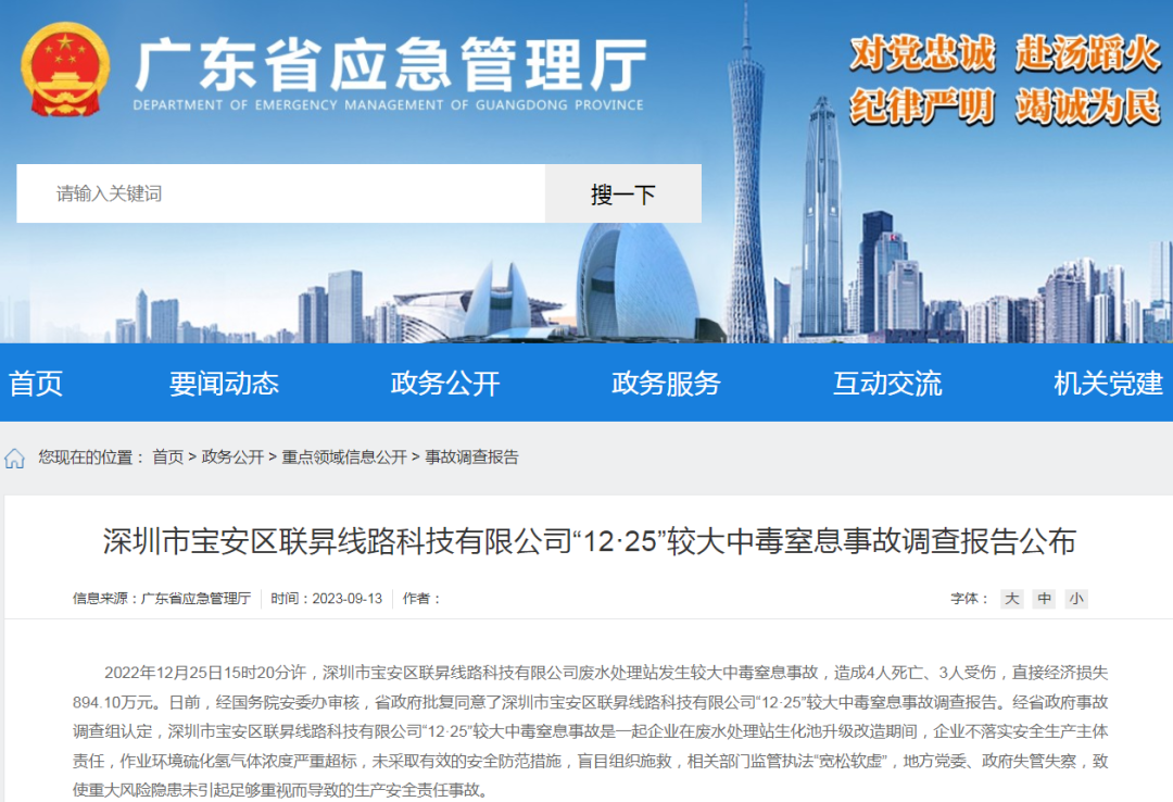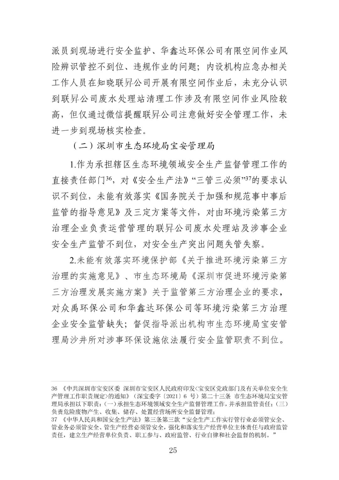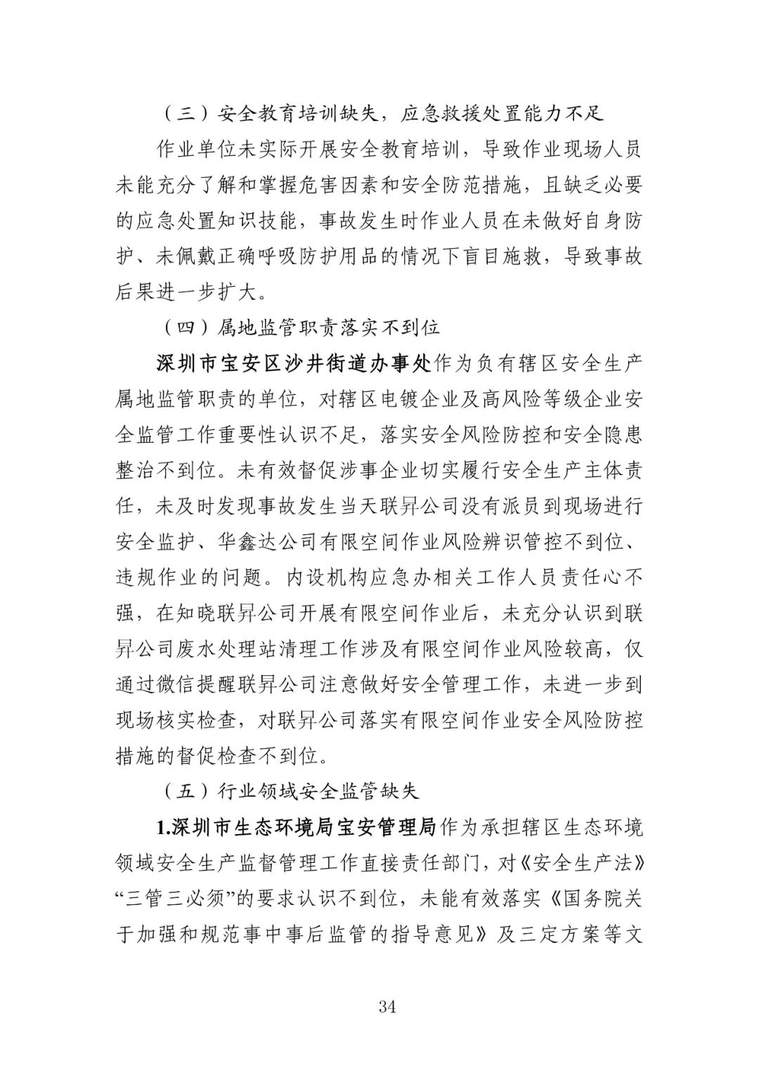 深圳市生态环境局宝安管理局,未有效督促涉事企业落实安全生产作业要求,被责令作出书面检查。