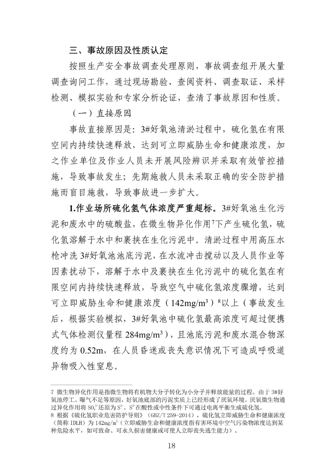 废水处理站的3号好氧池清淤过程中,硫化氢在有限空间内持续快速释放,达到可立即威胁生命和健康浓度,加之作业单位及作业人员未开展风险辨识并未采取有效管控措施,导致事故发生;先期施救人员未采取正确的安全防护措施而盲目施救,导致事故进一步扩大。
