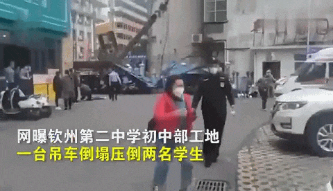 广西壮族自治区钦州市一建筑工地塔吊发生倾覆,导致场外途经的两名初中生1死1伤。