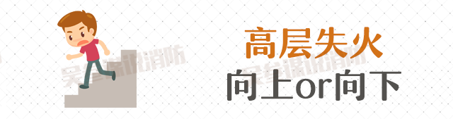 烟雾堵门退守待援如果楼梯或者房门被火和烟雾封住,就不要冒险冲过烟雾,这样容易被烟火熏倒或是烧伤。这个时候应该退守待援,找一个有水有外窗的房间,关上房门并泼水,用湿棉被、毛巾等封住房门,暂时阻止火势蔓延。寻找避难层待援,一般高层建筑都会设有避难层。如果不能安全逃到地面,那么应往避难层逃生,在避难层等待救援。及时发出求救信号固守待援时,无法由房门逃生,只有依靠外窗和阳台。居住在三楼以下的居民可利用床单、窗帘、衣服等物品连接成救生绳捆于窗框、暖气管等物体上,沿绳下滑逃生。如果居住的楼层很高,白天用鲜艳的毛巾到窗口挥动,夜晚用手电闪烁的方式发出求救信号。如果起火点在所处位置上方,楼道里没有烟雾,毋庸置疑,请往下疏散逃生,尽量不要待在屋内,以防火势蔓延或遭遇爆炸等其他险境。如果起火点在所处位置下方,不要贸然开门,先用手背触碰门把手,若门把手已经发烫,应在室内等待救援;如果开门时发现有毒烟气已经充斥电梯间和楼梯间,甚至火已烧至家门,此时应当固守待援。危急时刻可以利用现有长度的救生绳下滑到其他楼层暂避。现在很多家庭安装了防盗网,建议在上面留一个逃生出口,关键时刻可以打开逃生。逃生过程中,要分秒必争,不要浪费时间去穿衣戴帽,或者去寻找贵重的物品。特别是当跑到室外以后,又因牵挂室内的物品重返火场的做法,相当危险。