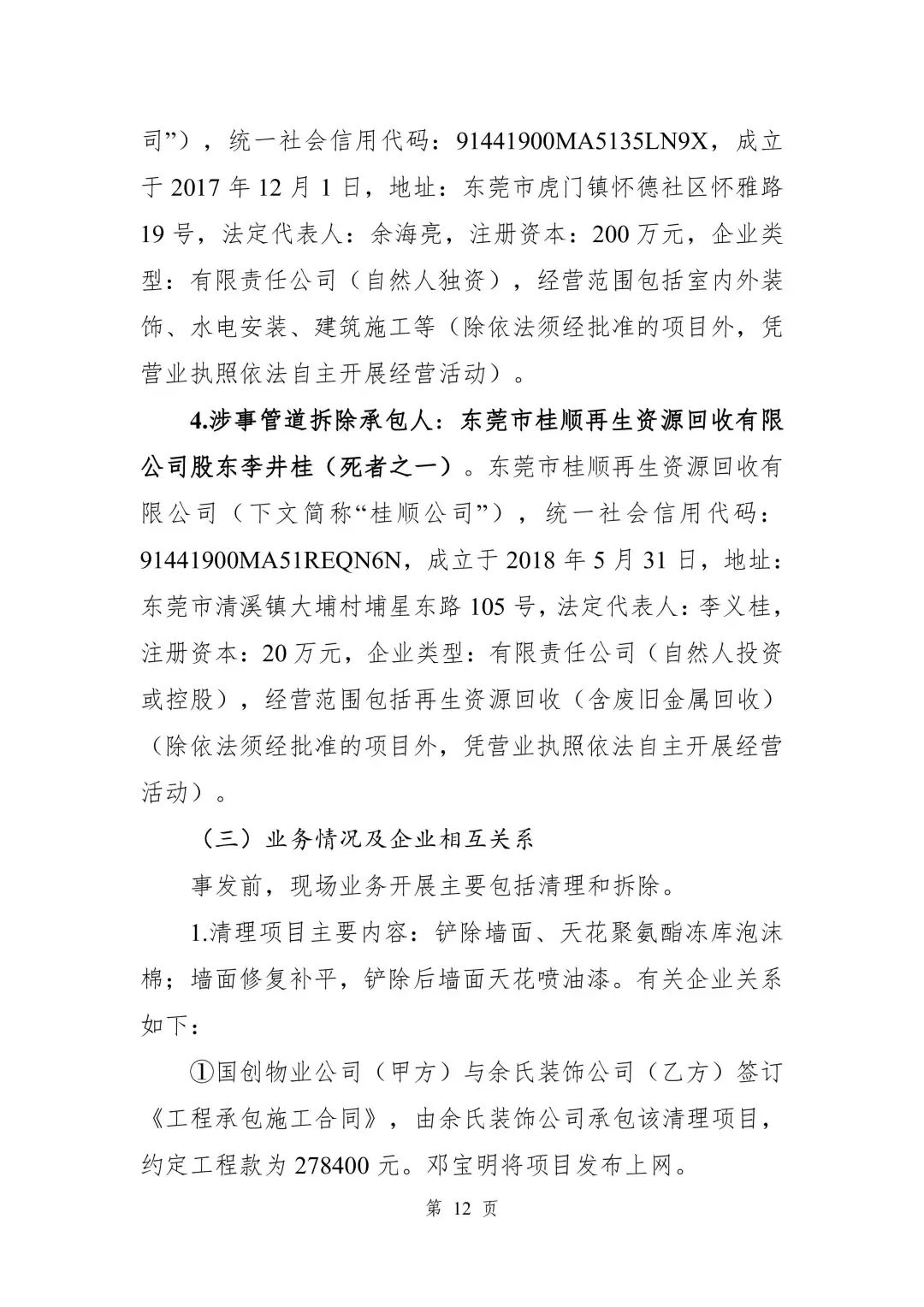 东莞市园仔山食用菌有限公司(涉事厂房出租方)雇用东莞市桂顺再生资源回收有限公司李*桂施工队7人(李*桂、彭*金、刘*明、邓*德、李*武、曾*林、欧*得)对厂房金属管线进行切割拆除以2100元/吨卖出。当日,厂区内有桂顺公司7人、余氏装饰公司13人、园仔山公司3人共27人在作业。
