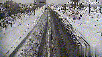 雪天道路湿滑,小车驾驶员操作不当,导致车辆失控,撞向中央护栏后,又再次撞向右侧防护坡。