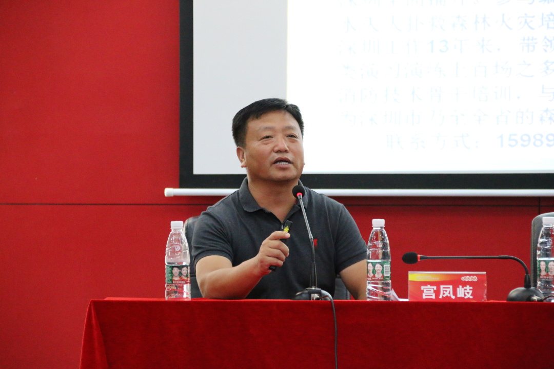 理论培训现场,主讲人宫凤岐结合37年来的森林防灭火工作经验,分析当前全省的森林防灭火形势,总结深圳近期发生的森林火灾扑救的基本情况,解读森林火灾的基本特点,分析扑救森林火灾信息传送的相关流程,分享联合作战时处置火情的心得,介绍森林火灾扑救的组织与指挥的重要性,援引森林火灾扑救应把握的重点内容,拓展常用的十五种森林火灾扑救基本战法,以此增强罗湖区森林防灭火的理论基础。