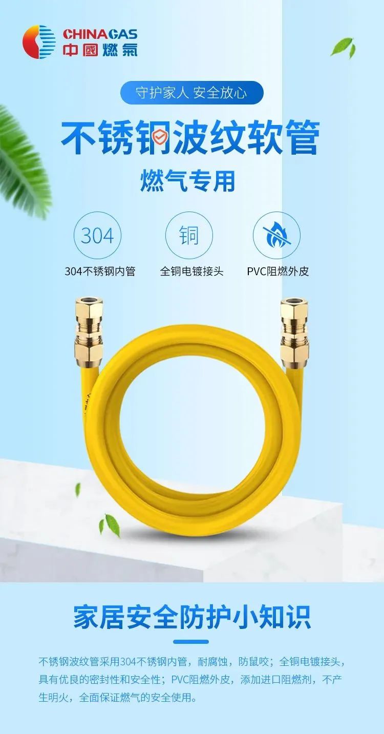 金属波纹管是现在比较受欢迎的燃气输送管,相比于传统的橡胶软管,具有耐高温、不易脱落、防鼠咬、柔性好、使用寿命长等优点,安全性更高。