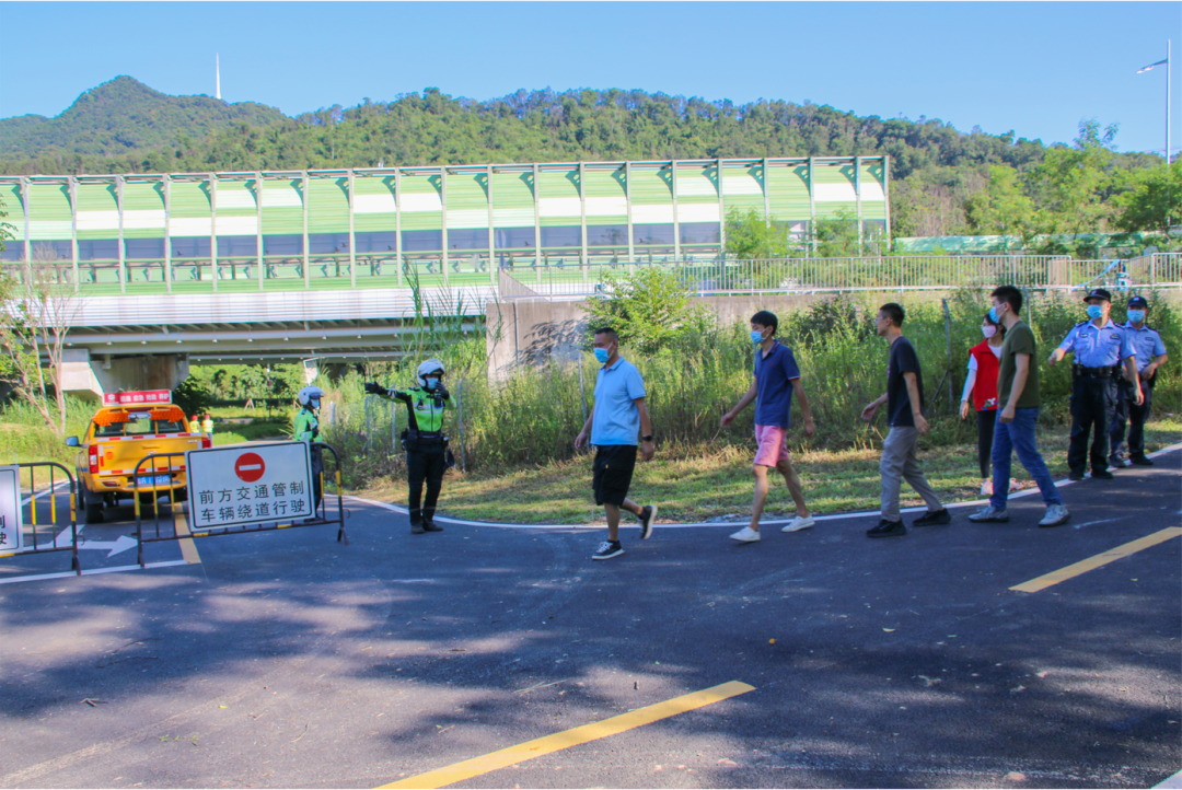 收到险情处置命令后,各部门快速反应,赶赴现场,高效有序地开展一系列应急处置工作。其中,罗湖交警大队率先派出铁骑机动巡逻队员赶到灾害现场,封闭管制有关路段,分流疏导过往车辆和行人,同时将受伤人员转移至安全地带,对其作初步处理后等候救援;莲塘派出所民警会同街道工作人员共同协助维护现场秩序,禁止无关人员进入警戒区内,同时做好引导应急抢险救援车辆进入准备;罗湖区卫生健康局派出救护人员参与现场救援工作,同时配合做好震后防疫工作措施;罗湖区消防救援大队队员携带地震救援基础装备跑步到达灾害现场展开救援工作;医护人员携带药箱、担架等赶赴现场救护伤员,同时做好进一步救治工作;市交通运输局罗湖管理局派出应急抢险工程车抵达现场,并由桥梁安全专家详细勘查立交裂缝,同时开展现场检测、评估及处置工作。
