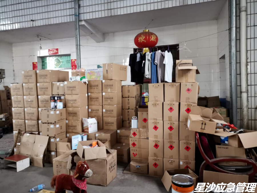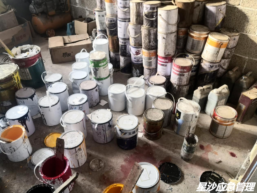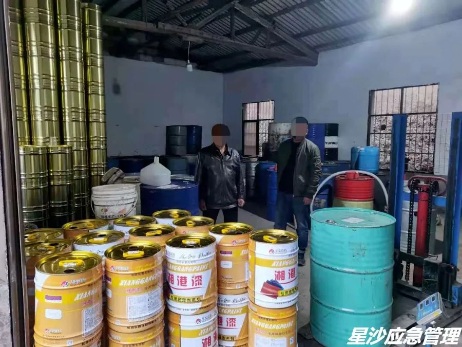 2021年5月20日,长沙县㮾梨街道执法人员巡查发现,街道金托村一建筑屋内存有疑似油性油漆、固化剂、稀释剂等危险化学品。