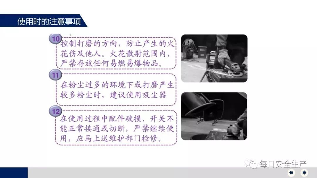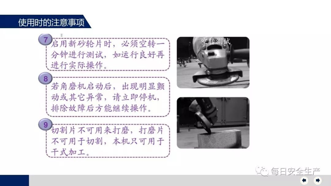7.使用手持式砂轮机时要切记不可用力过猛,要缓慢均匀用力,以免发生砂轮片破裂的现象;