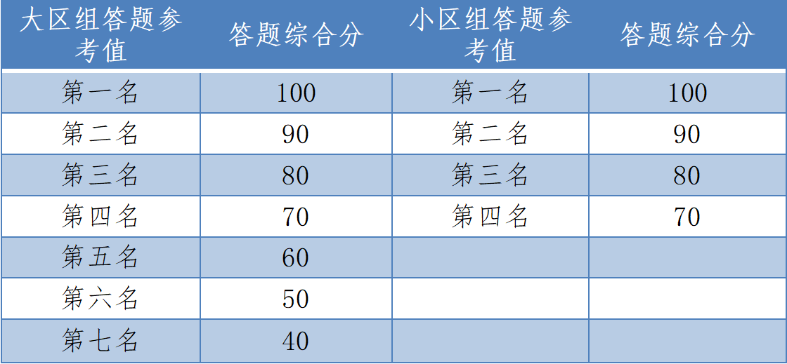 答题综合分根据各区答题参考值排序得出。计算公式如下:
